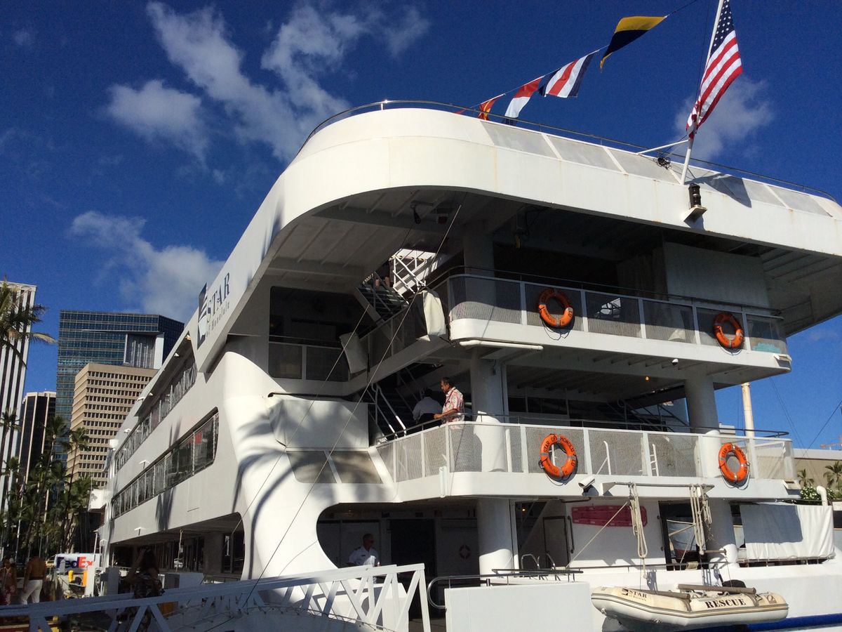 15年前、家族にて、アリイカイ号ディナークルーズ、今回は、揺れに弱い参加者のため、スターオブホノルル号サンセットディナークルーズ(3スター)としましたが、家族、職員みな大満足です。