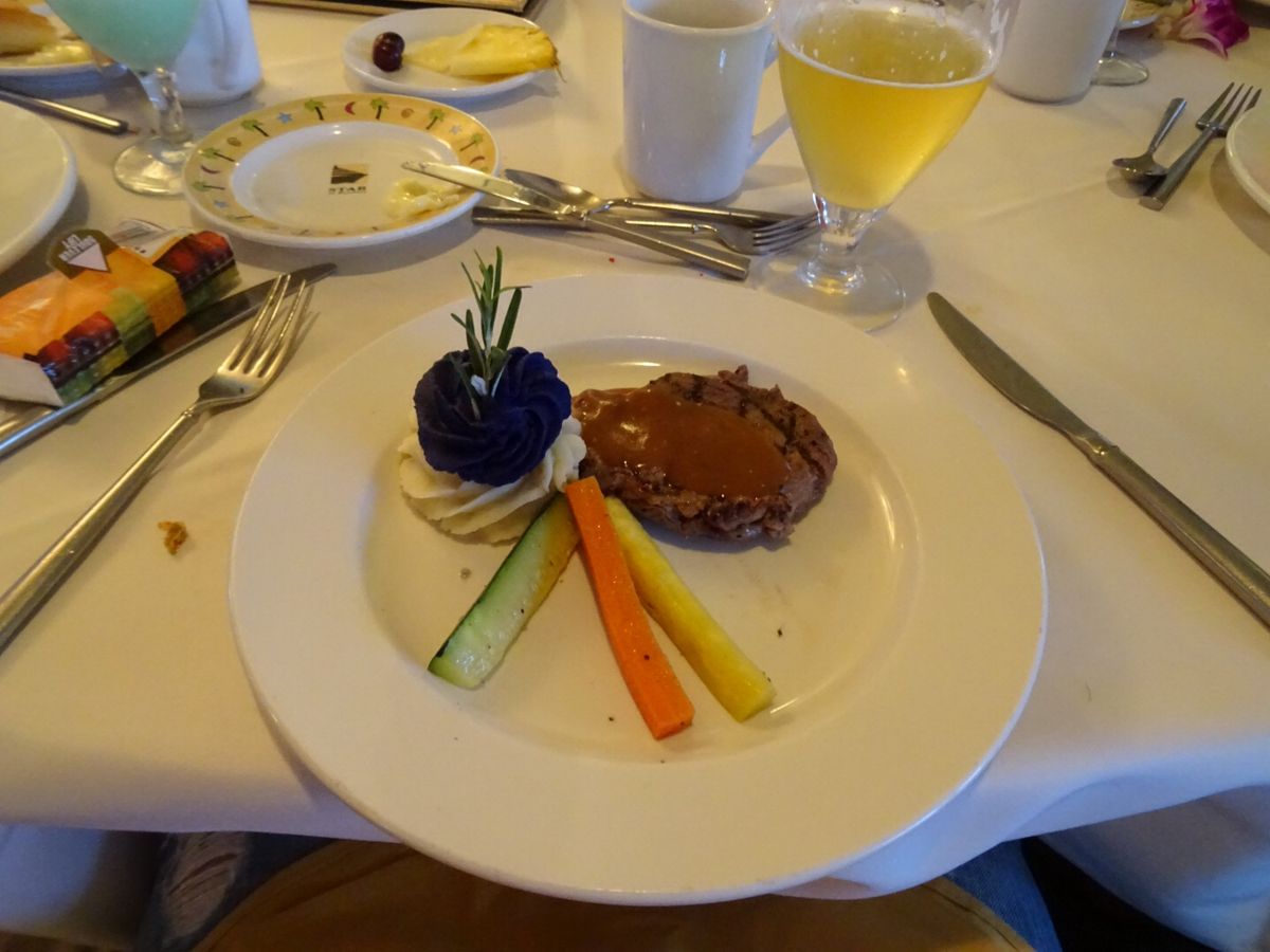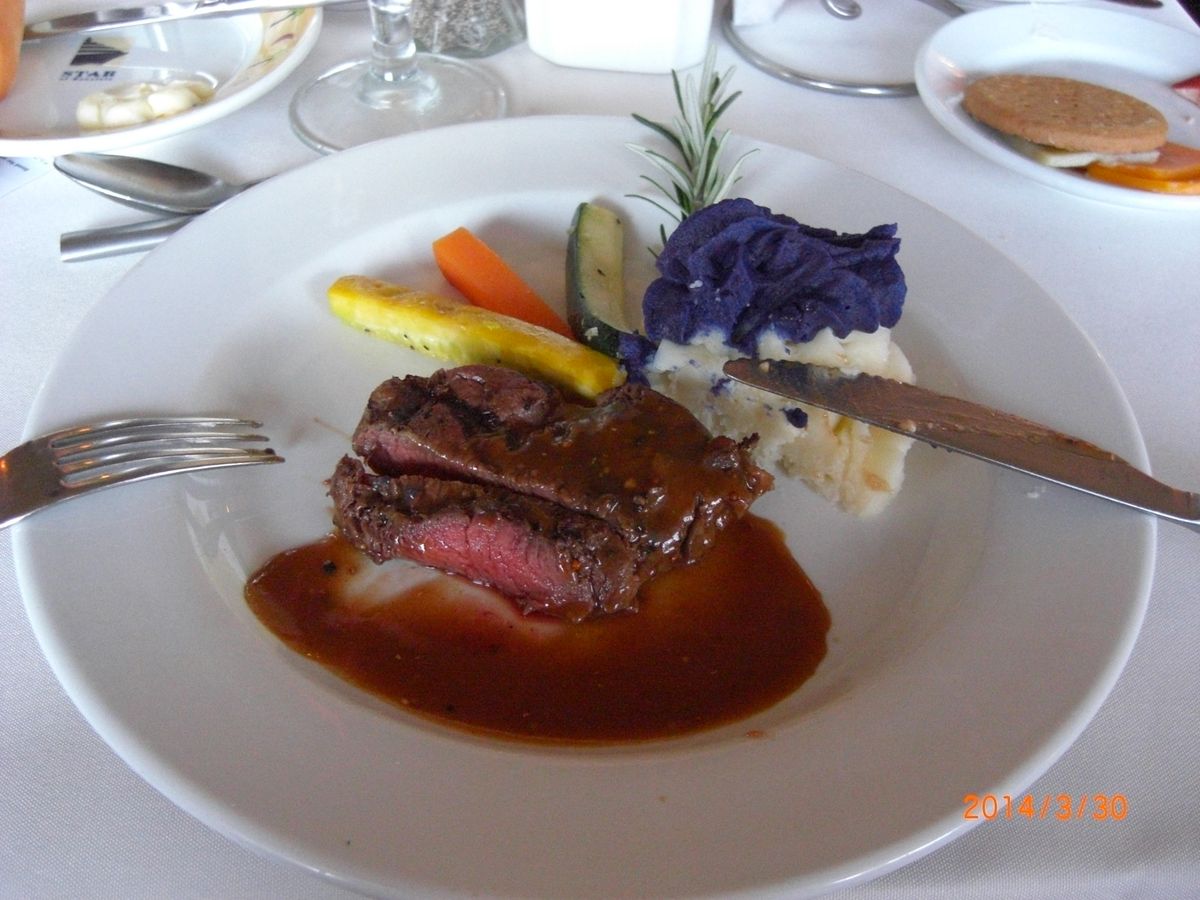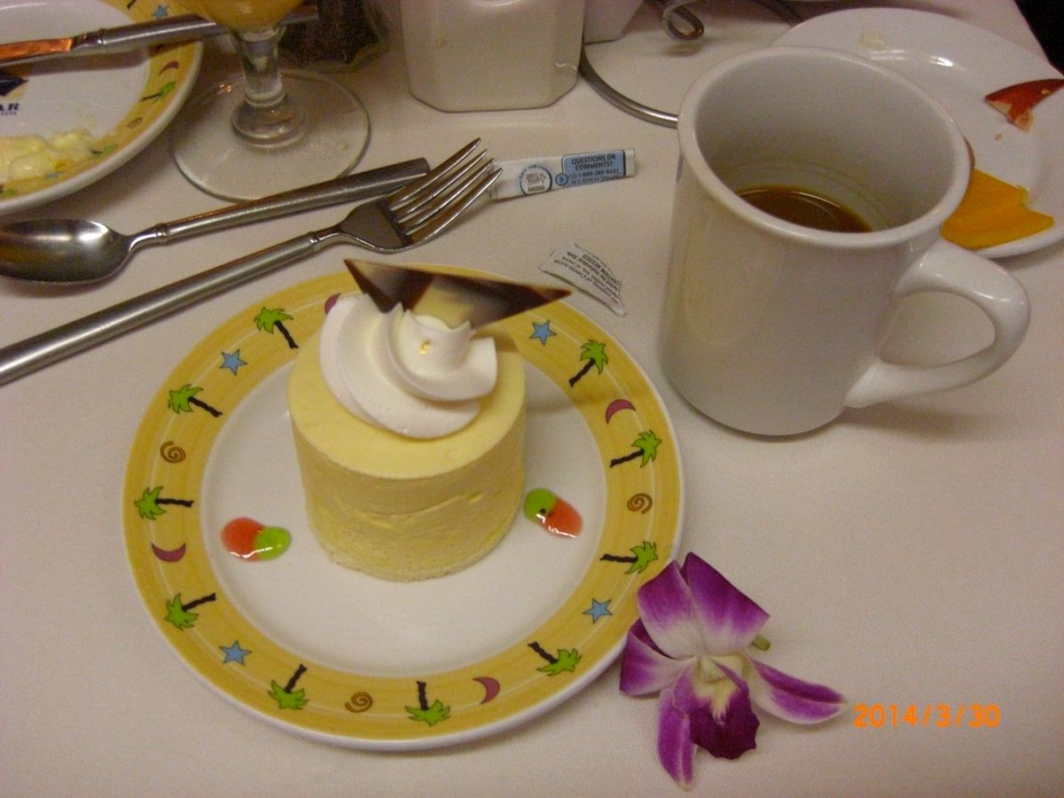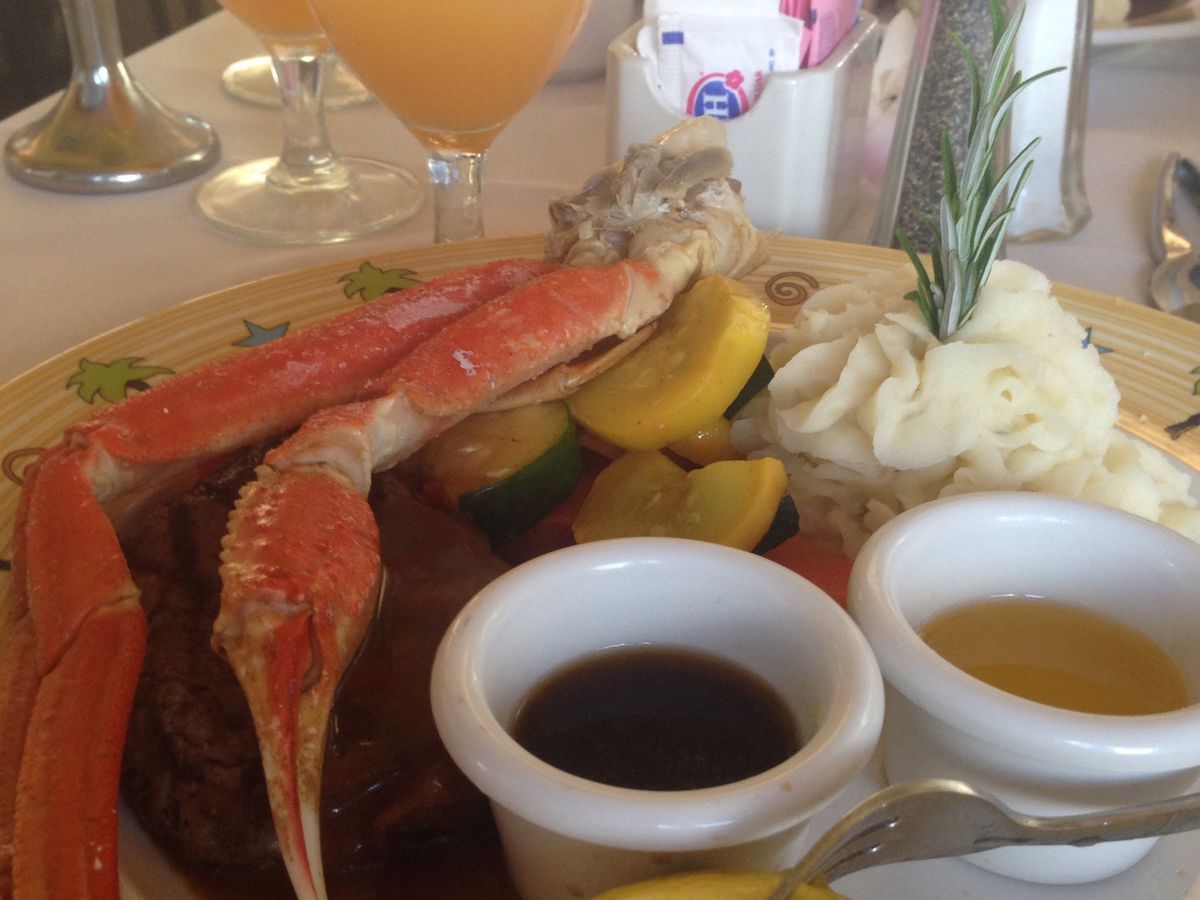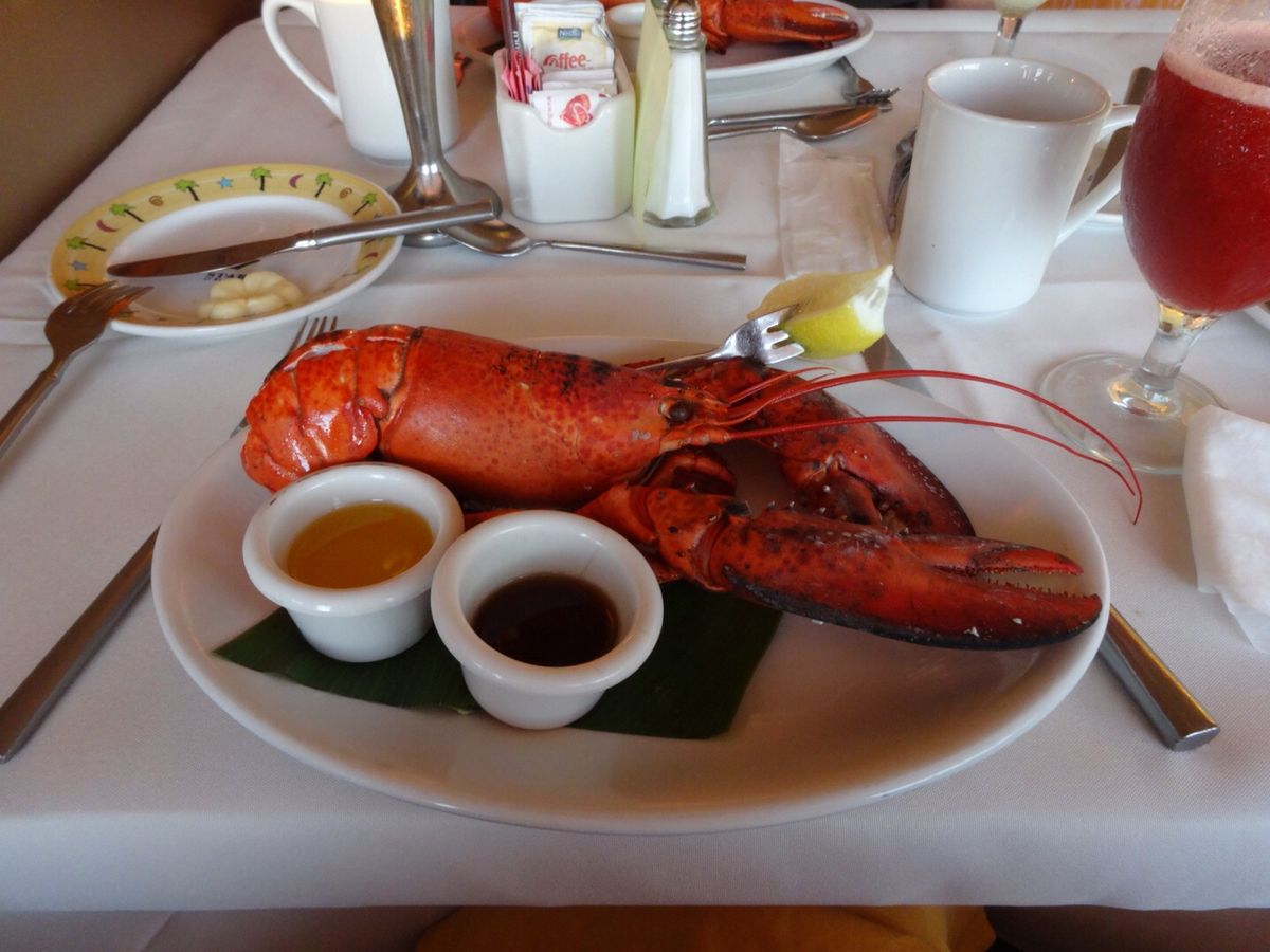 実は私の両親も同じクルーズを予約していたのに会うことができませんでした。あとで、1スターのかに料理の階にいて、塩辛かったそうです。3スターのロブスターは美味しくいただきました。が、ウェットティッシュ持参をおすすめします。手洗いのためのトイレの行列が長時間続きました。