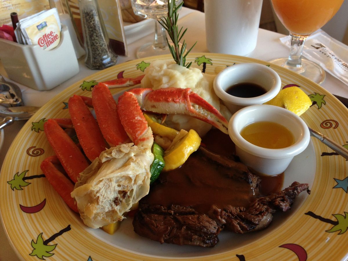 食前酒がサービスで、食事はカニとステーキでした。