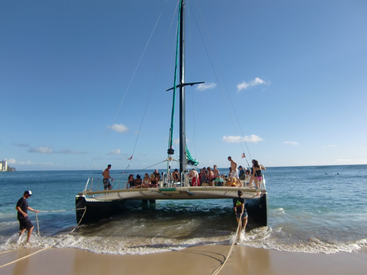 友人から すすめられ、日本から10人ほどで予約しました。乗り場がわかるか?不安もありました ワイキキビーチに行けばすぐわかり、集合から30分ほどで、出港!!ヨットなので めちゃくちゃ 気持ちが良く皆んな大満足!!
