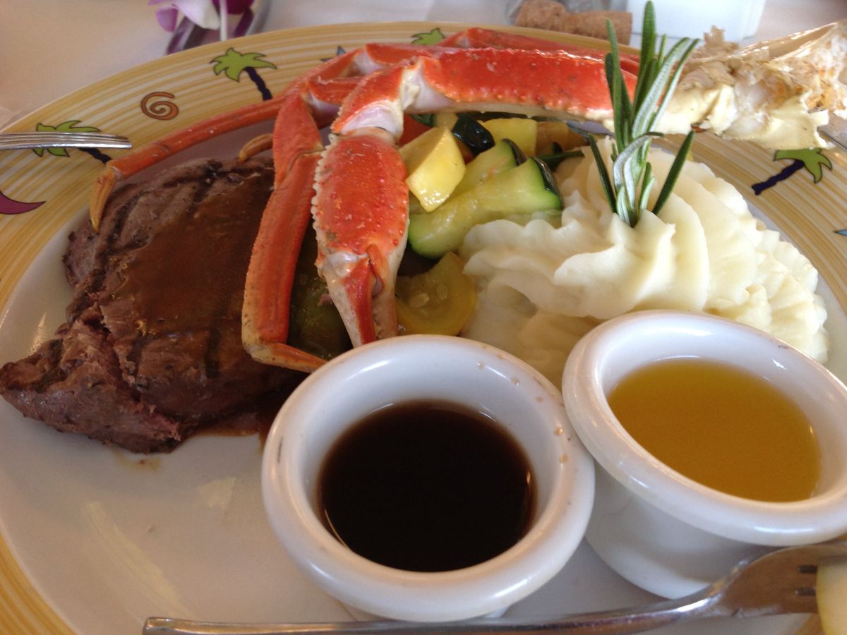 お料理の味はそれほどでもないのですが、丸ごと1匹のロブスターだったり、ステーキだったり、目で楽しめました。