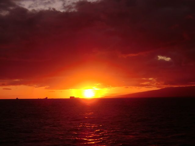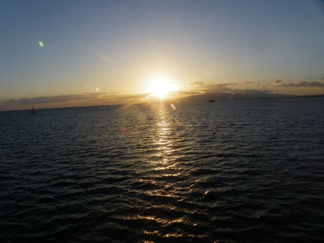 そして船外は雲一つ無い青空で ハワイアンをBGMに真っ赤に燃える サンセット 何とも言えない夜でした。