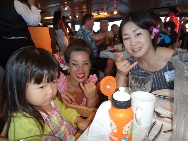 フラダンスのショーでは次から次へとダンサーが現れ、盛り上がったところで最後は陽気なスタッフと参加者全員がダンシング!あっという間のクルージングでした。生ギター演奏のおばさんがスゴクかっこよかったです。