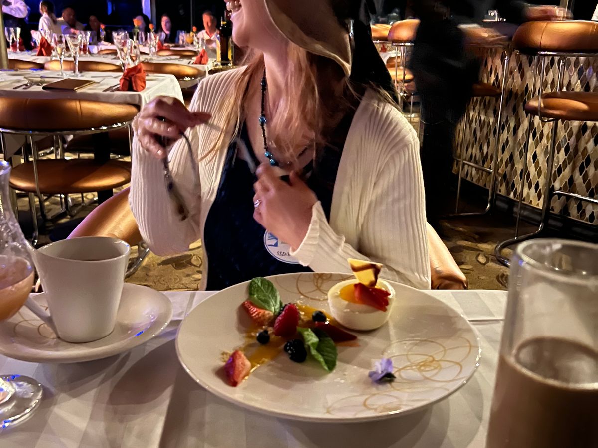 イベントは時間通りにシャンパンのグラスで始まりました。食事は予想以上に良かったと認めざるを得ません。スタッフは、私たちがテーブルにいるときまで各コースを提供するのを待ってくれました。私たちはコースの合間に外に出て空気を吸ったり、写真を撮ったりすることが多かったからです。ロマンチックでリラックスした雰囲気の短いディナークルーズを探している人にはお勧めします。