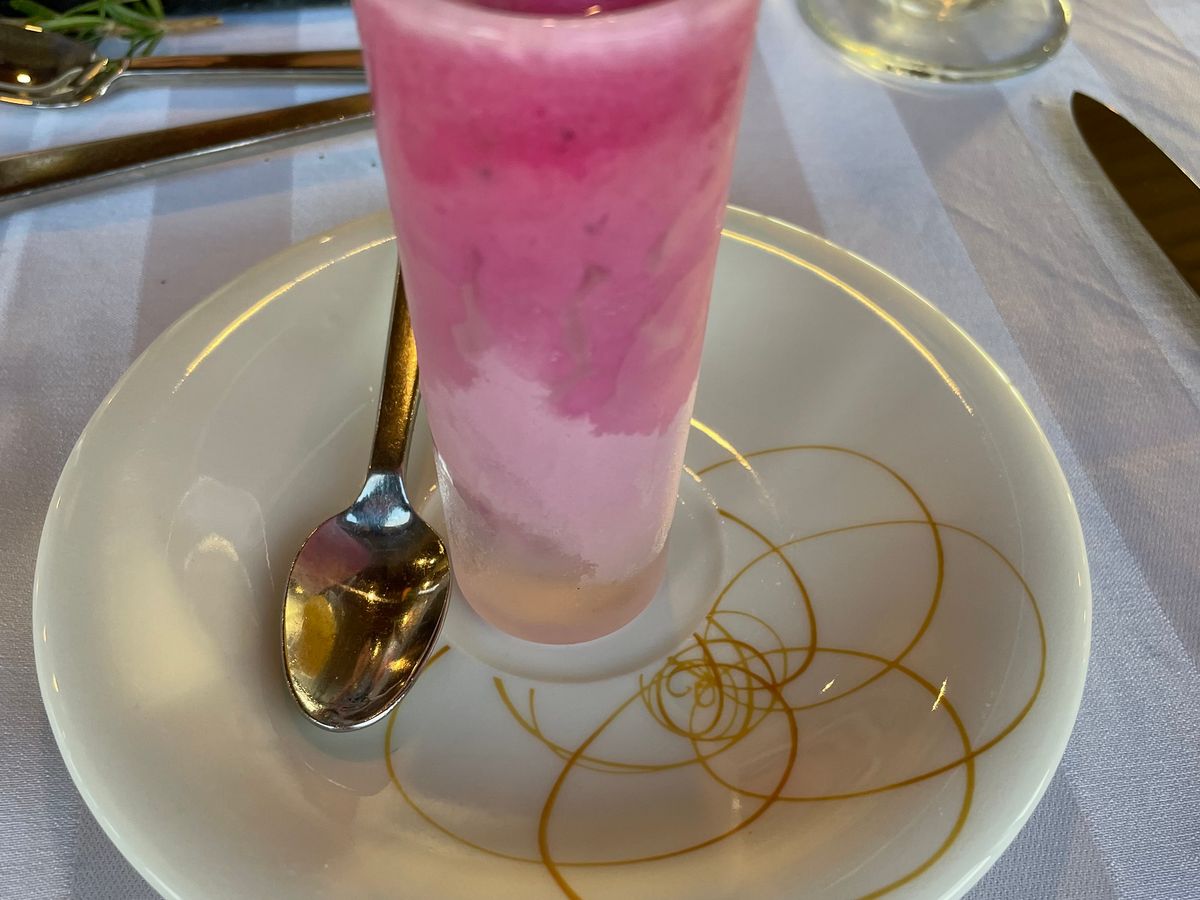 料理はとてもユニークな順番で提供されました。食事の途中でソルベを食べたのは初めてで、その食感と風味を今でも夢見ています。料理のプレゼンテーションと品質は非常に印象的でした。各コースは私をますます驚かせました!