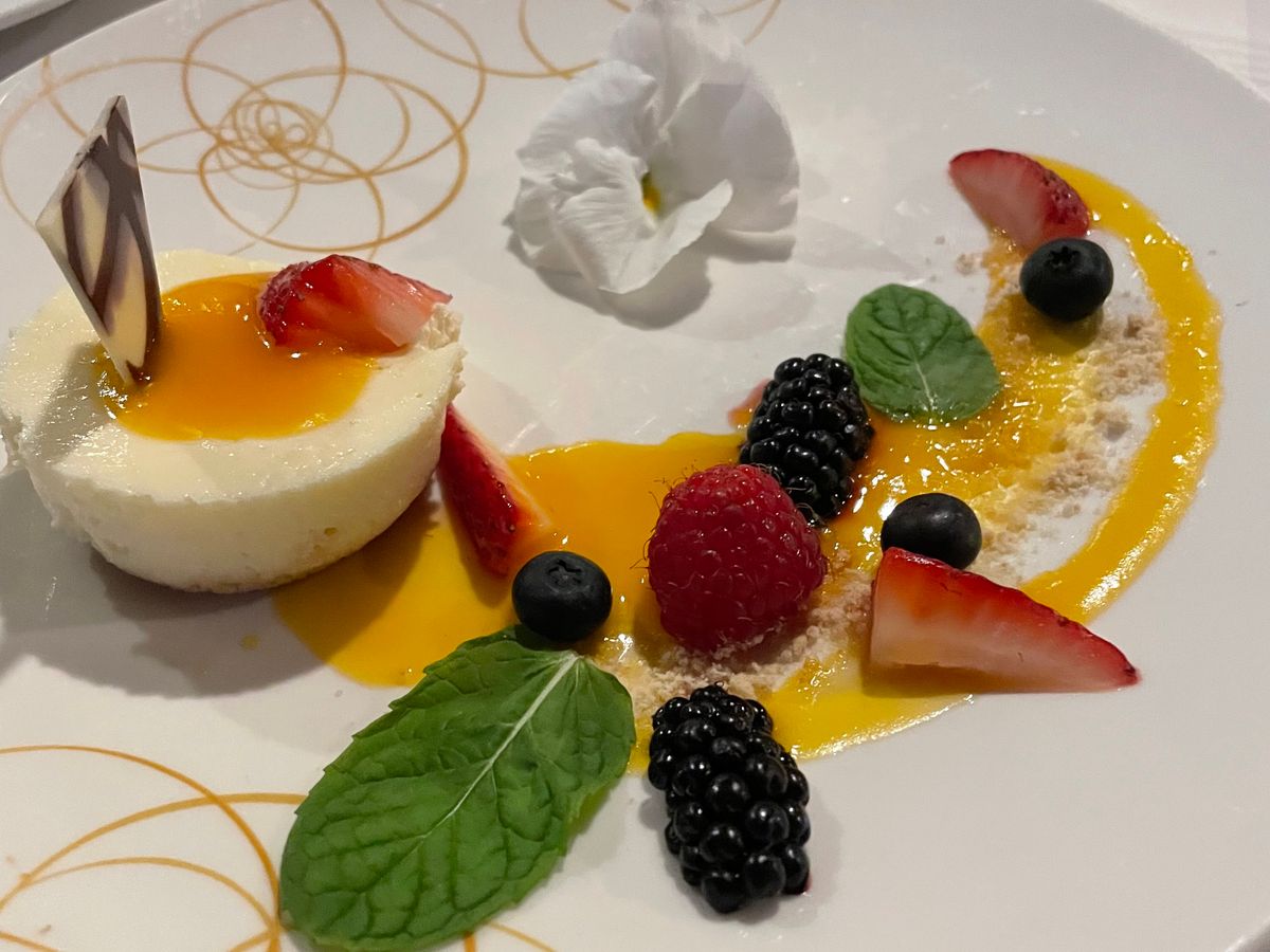 We thoroughly enjoyed the delicious dinner. The steak was exceptionally tender, and the fresh fruit sorbet was our favorite. The servers provided excellent service as well, and the entertainment complemented the rainy weather, creating a more relaxing atmosphere.