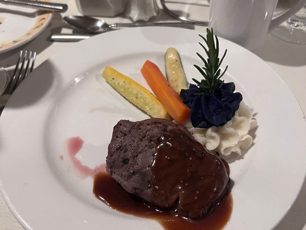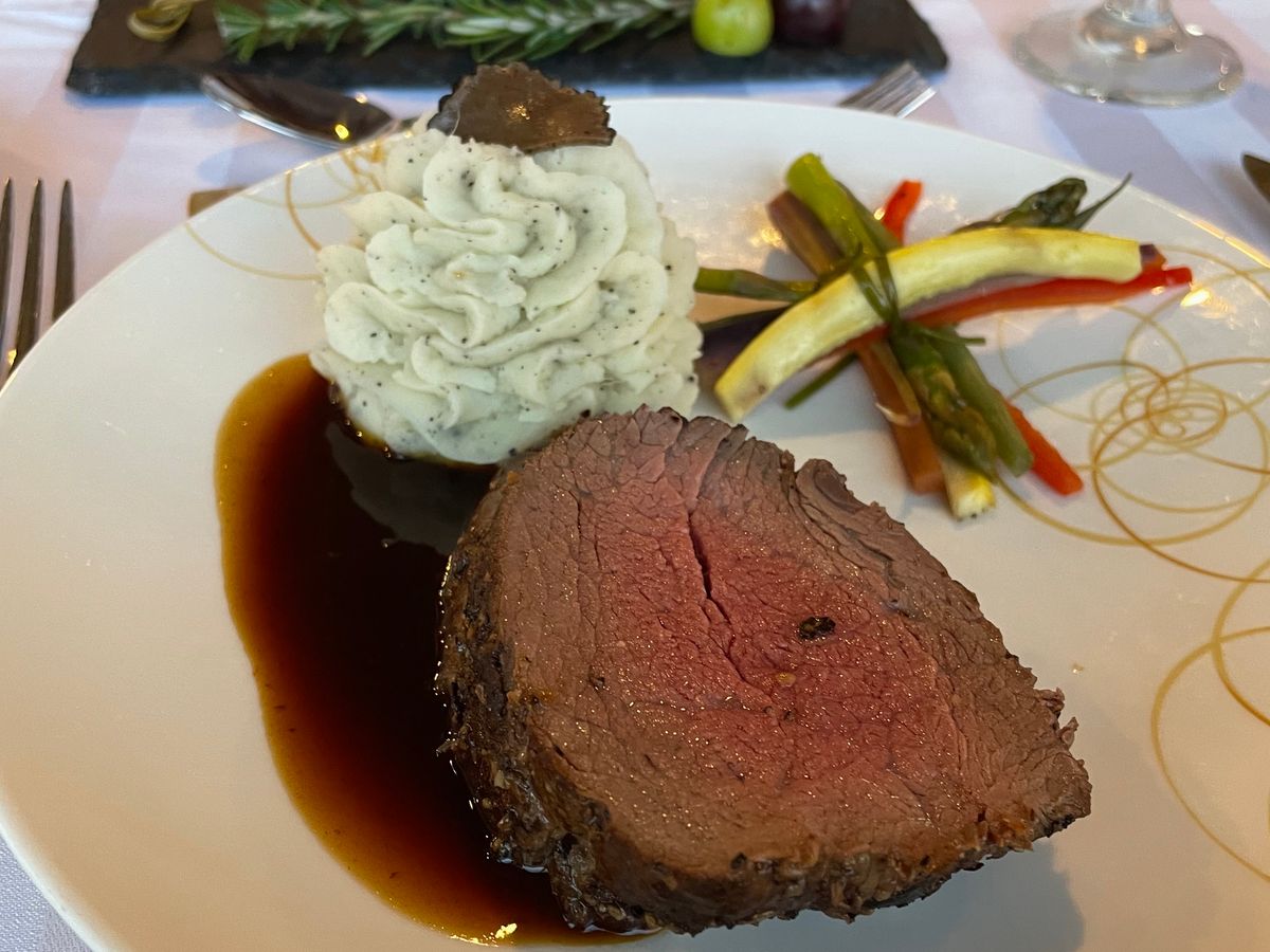 美味しいディナーを心から楽しみました。ステーキは特に柔らかく、新鮮なフルーツソルベが私たちのお気に入りでした。サーバーのサービスも素晴らしく、エンターテイメントは雨の天気にぴったりで、よりリラックスした雰囲気を作り出していました。