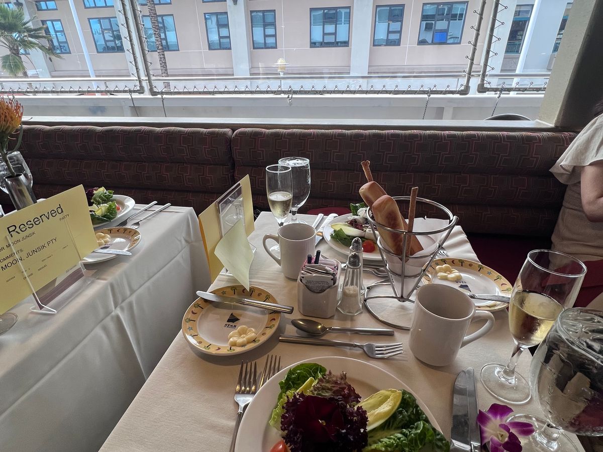 船上からの美しい景色が忘れられません。ダイヤモンドヘッドも入るパノラマ撮影を何度もしました。甲板では風が強く、一生残る1枚を撮るためには少し工夫が必要かもしれません。料理も豪華、特にロブスラーは見た目から感動します。