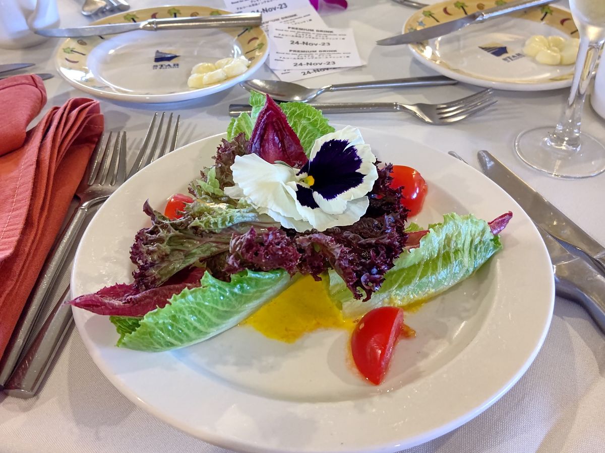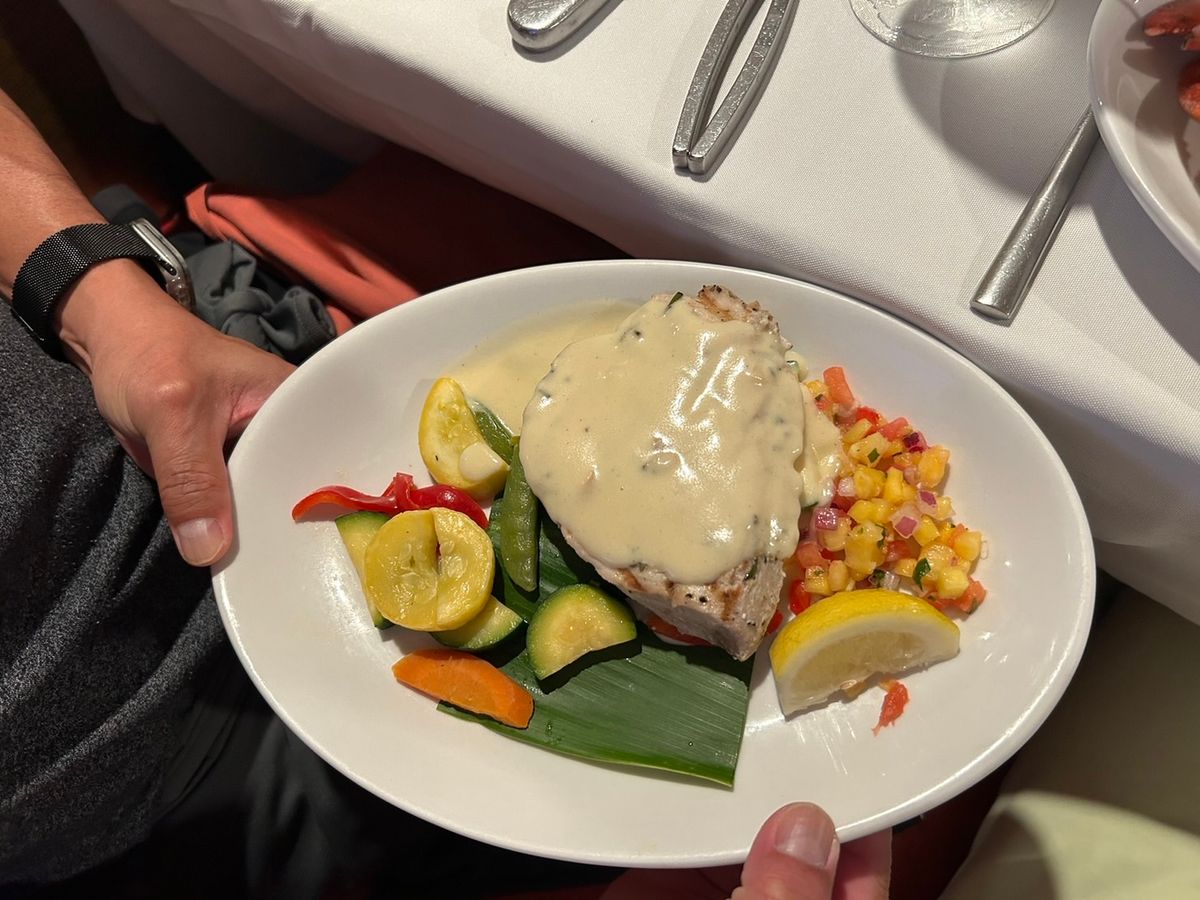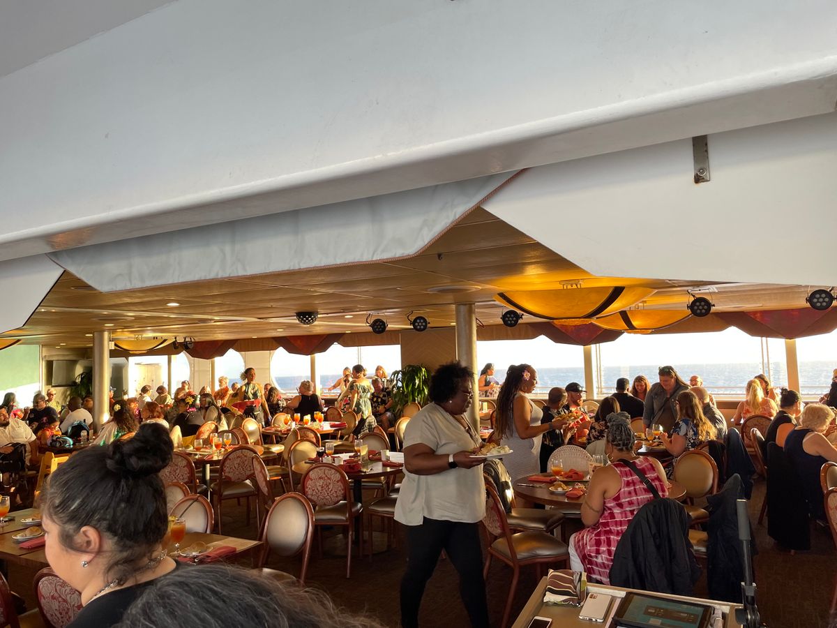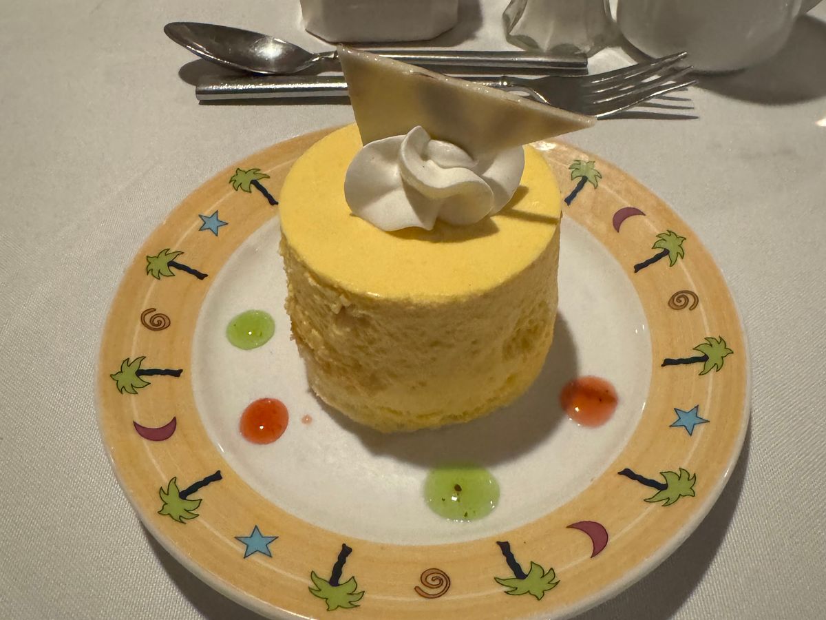 やっとドリンクが来ましたが、私はノンアルを頼んだのに飲んだら明らかにアルコールが入っていてトホホ…。変えてもらおうにもずっとサーバーが忙しくしていて無理。ステーキを運んできたときに、注文したものと違うから変えてほしいと伝えました。が待ってもやはり来ず。メイン食べてる時にもドリンクが一滴も飲めていないという状況、私もうセルフのお水飲みました(苦笑)。私の注文はもう諦め、ステーキのお皿を下げにきた時に主人の2杯目のドリンクを注文したけど、これまた最後まで運ばれることはありませんでした。プランには1人2杯のドリンクが含まれていますが、2時間の乗船で2杯飲むことは不可能だと感じました。