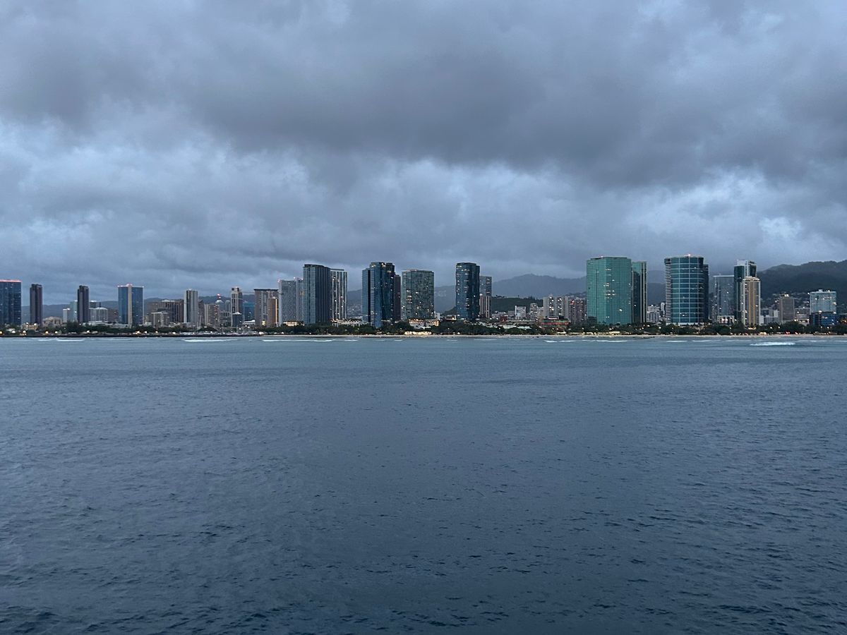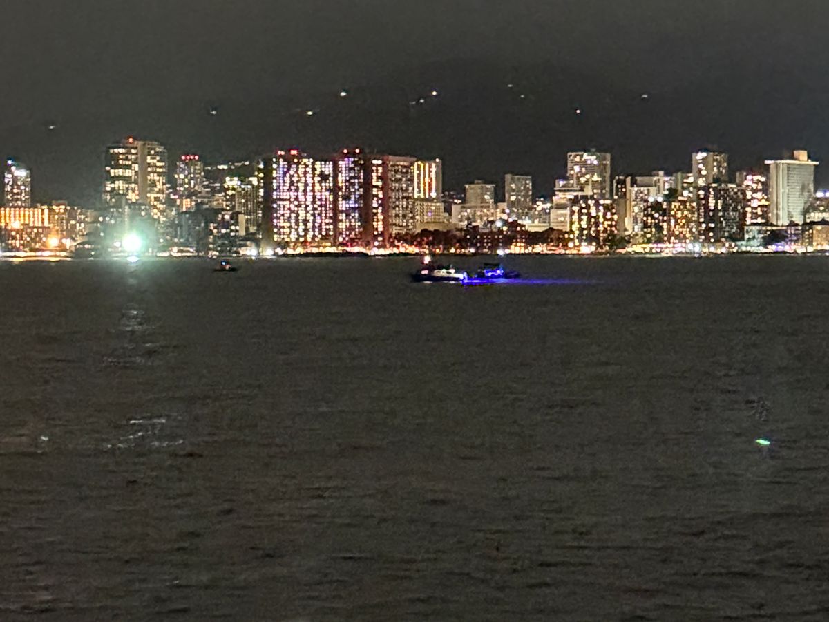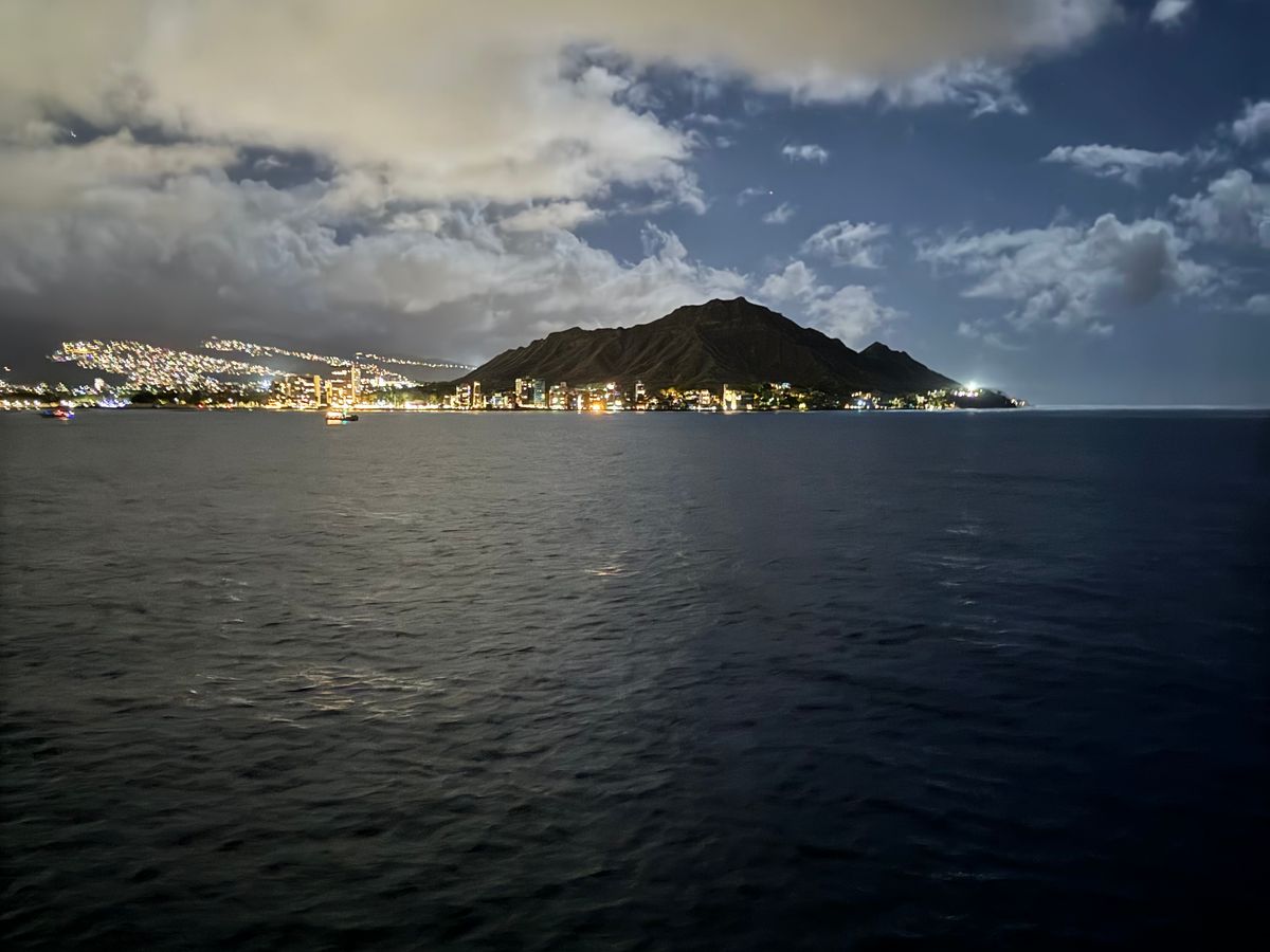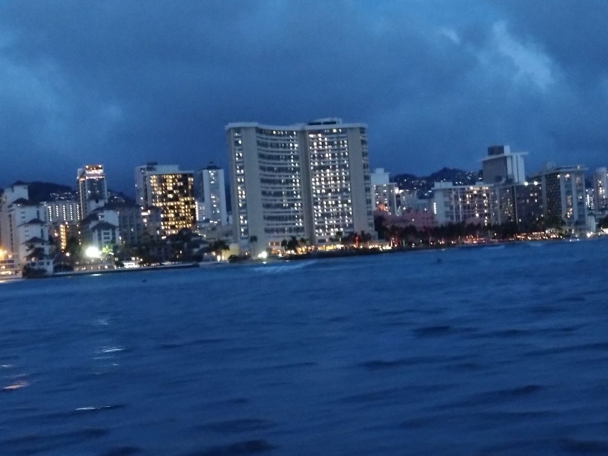 くもりでサンセットは残念ながら見れませんでしたが、ワイキキを海側から見る機会はないので景色や夜景は素敵でした。