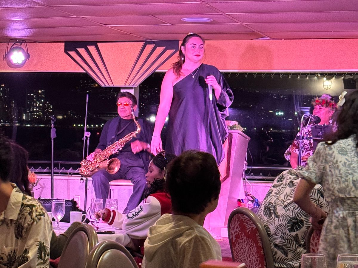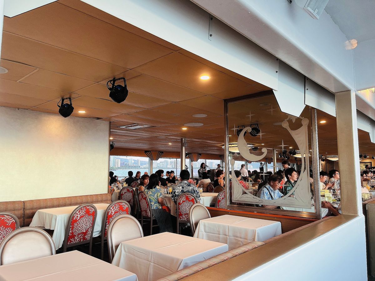 旅行会社の人に夫婦で旅行するならお勧めと言われ、参加しました。良くない口コミもあり実は心配していましたが、最高でした!やはり景色が最高です。日が沈むのを見ながらのディナーは最高でした。デッキに出てから写真を沢山撮りました。モクテルもとっても美味しくハワイらしいものばかりでした。食事はロブスターが大きくて身が詰まっており、美味しかったです。生歌唱やフラダンス、ハカなどのショーもあり、最後は皆でYMCAを踊って最高潮に盛り上がったところで到着しました。本当に良い経験となりました。ありがとうございました。