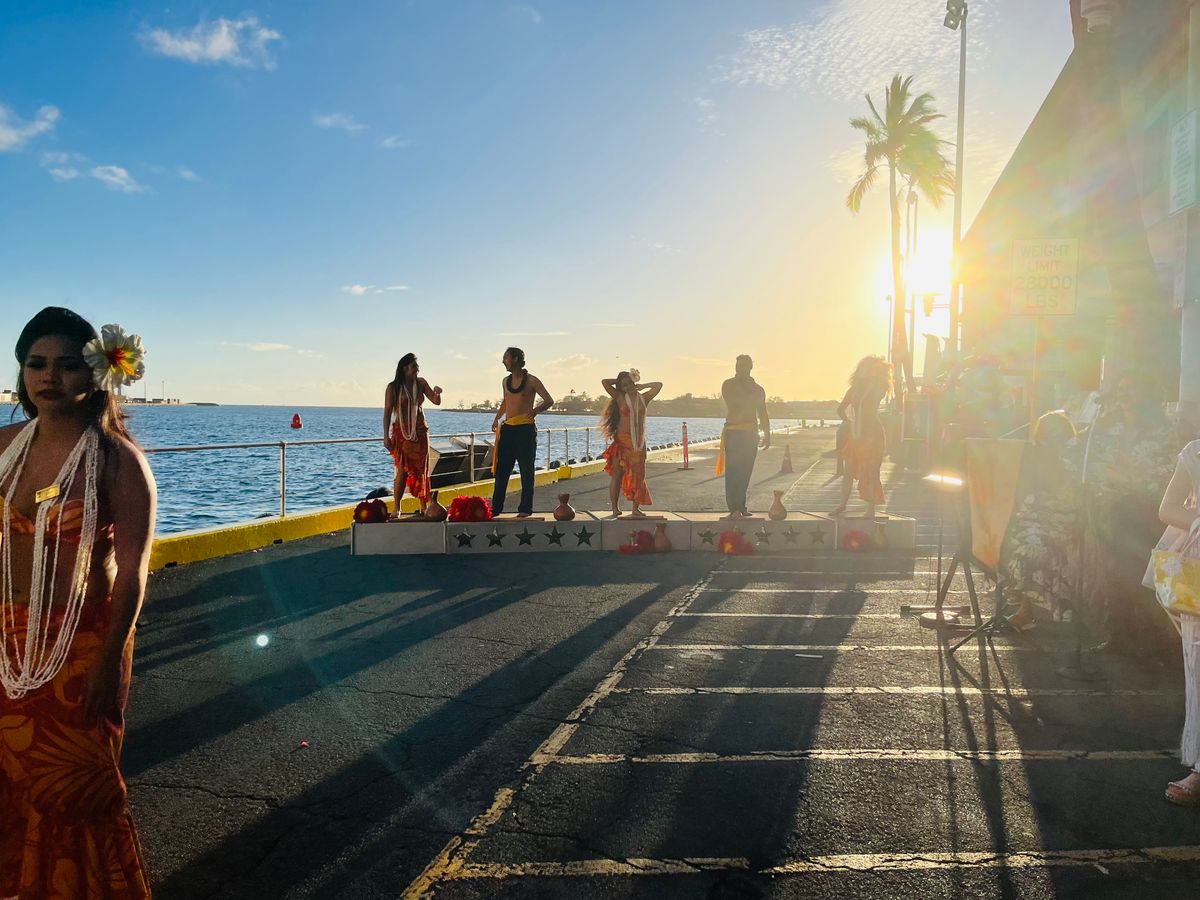 生演奏付きの中、お食事しフリータイム。途中なるべく早くサンセット撮影に船内をお散歩、自由が最高です。お席に戻りショータイムスタートハワイの歴史をフラダンスで表現✨ポリネシアンカルチャーセンターは遠くて諦めてましたが、内容は同じく船内で貸し切りのように目の前で拝見できるホノルル号でしたらお子さんからお年寄りまでみなさん楽しめて幸せと感じました꒰ღ˘◡˘ற꒱✯*・