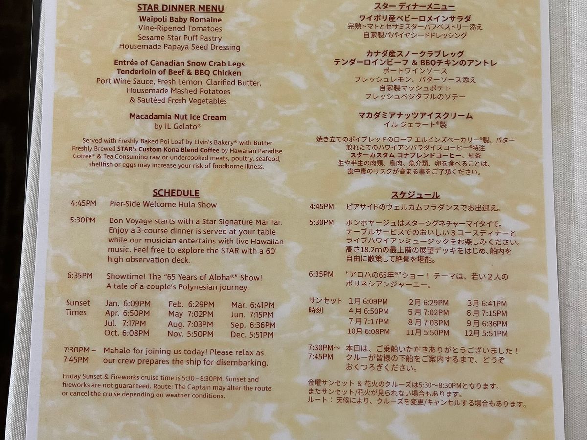 この度は私共のスターオブホノルル号デイナークルーズにお越し頂き誠に有難うございました。パシフィックスターでのブッフェ&ショーもお楽しみ頂けました様で大変嬉しく思います。ハワイでの素敵なサンセットと金曜日の花火もお楽しみ頂けました様でスタッフ一同光栄に思っております。またのお越しをスタッフ一同お待ち申し上げております。