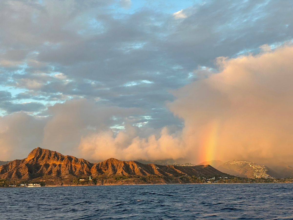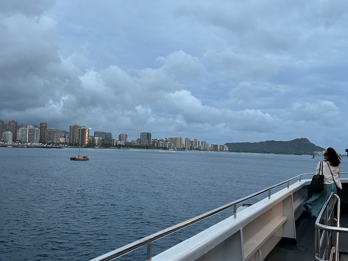 スタッフは陽気で親切に楽しましてくれます!とにかく沖合のから見るホノルルの街並みや夕陽の景色が美しく素晴らしいです。ダイヤモンドヘッドの近くまで航行します。