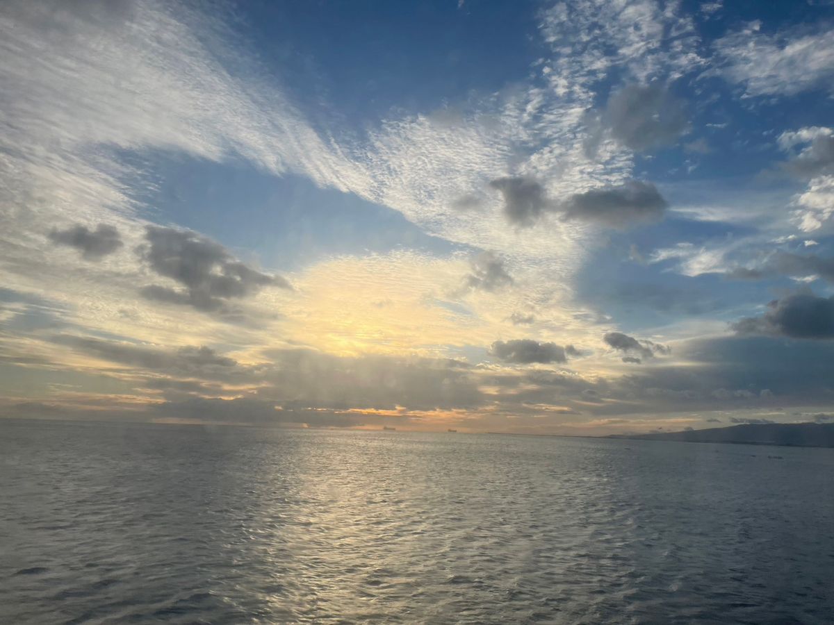 クルーズ船でのsunsetは、バイキングの順番と重なりあまり堪能できず。
