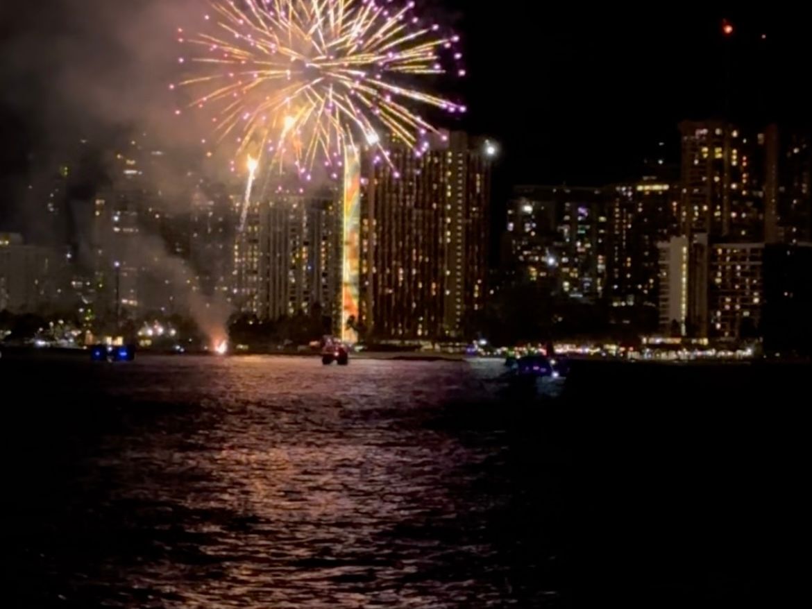 船からヒルトンの花火も見えた。
