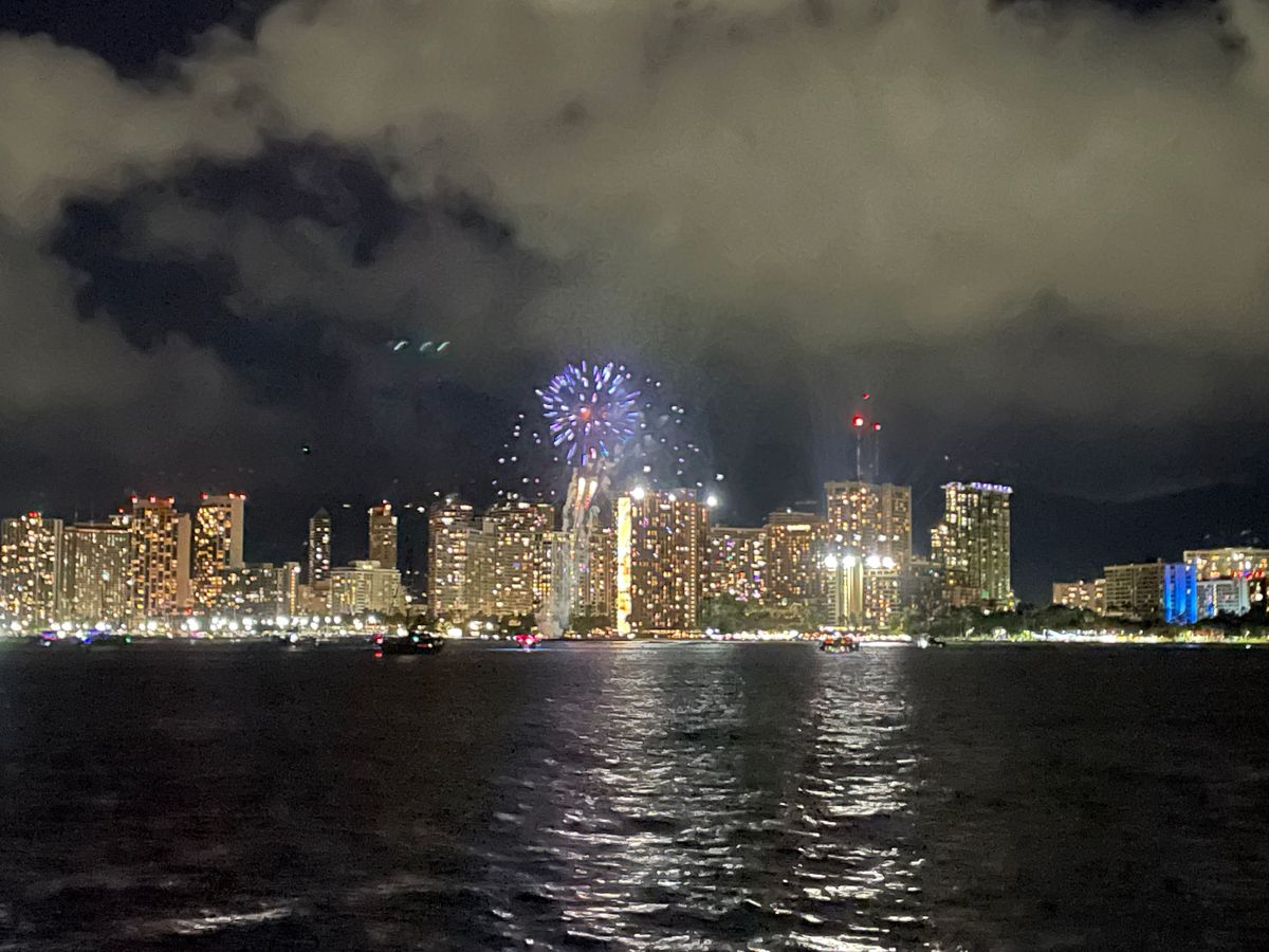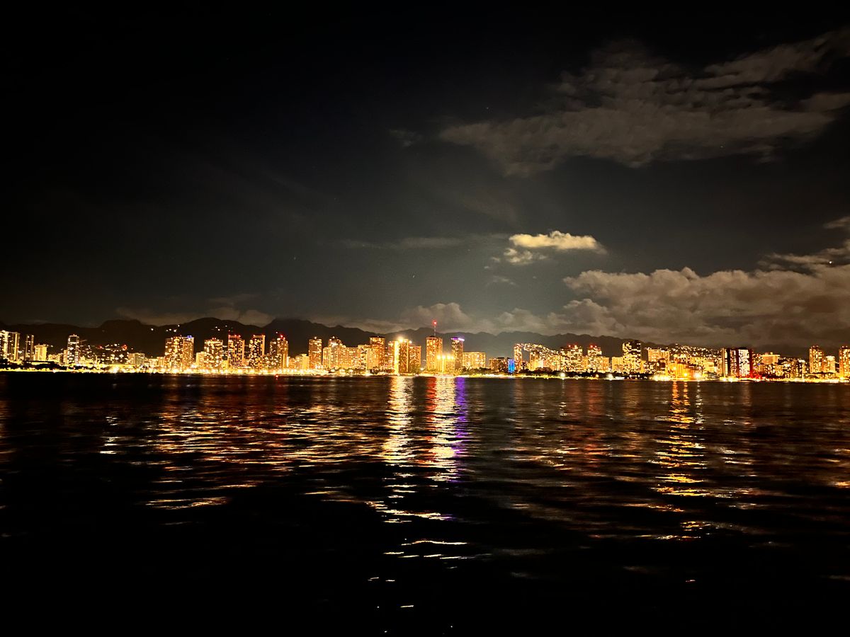 サンセットは船の中からとてもキレイに見え、海から見るワイキキの夜景はとても素敵でした!