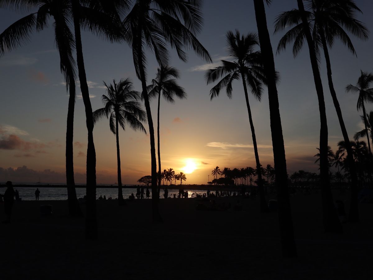 夜になると肌寒くなるため、アロハシャツに加えて長袖の上着は必要と思います。夕日や花火を写真に撮りたい方は、人がいっぱい並ぶため早めに動いたほうが良いと思います。