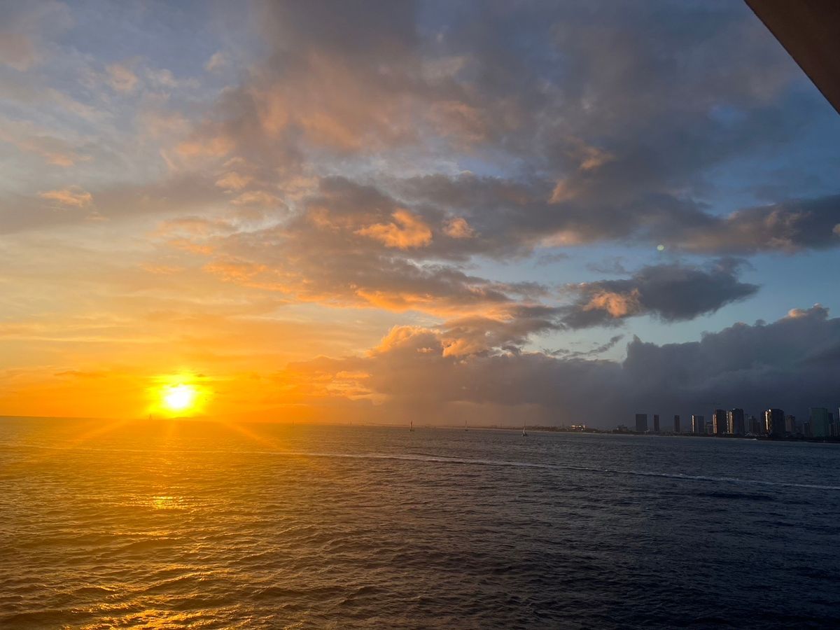 バスに乗るところから、スタッフの皆さんは親切で、最初から最後まで安心して楽しめました。旅行の最初からラッキーが続き、この日は大きな虹を見ることができました。料理もバイキング形式なので、多くも少なくも自分のおなかに合わせて食べることができて、特に小食な自分にとっても、それなりに食べたい家族にとっても良いです。デッキに上がって、海上から沈みゆく太陽を見るのもいいですね。お天気に恵まれ何よりでした。