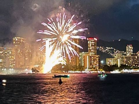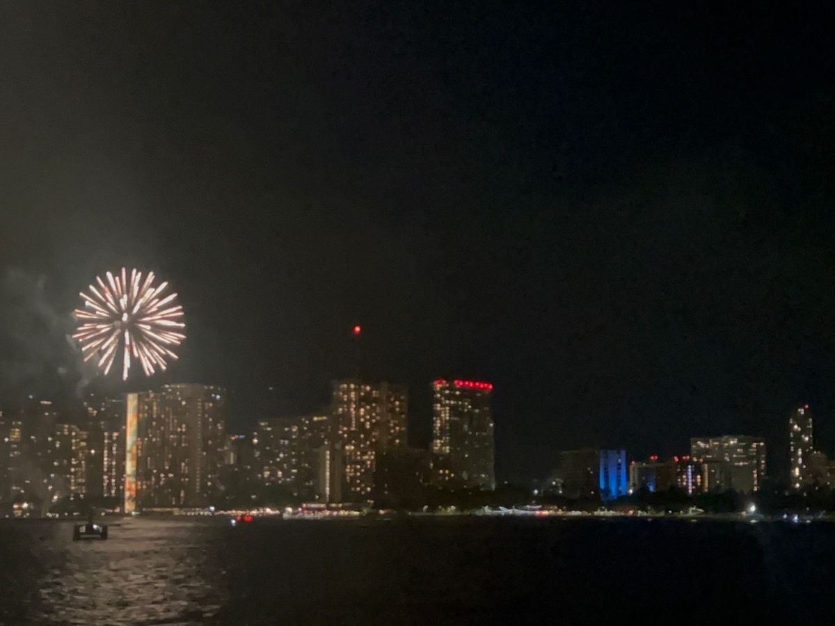 ヒルトンハワイアンビレッジに宿泊していたのですが、あまりにも近くて花火が楽しめないのかと思い、サンセットディナークルーズを申し込みしました。