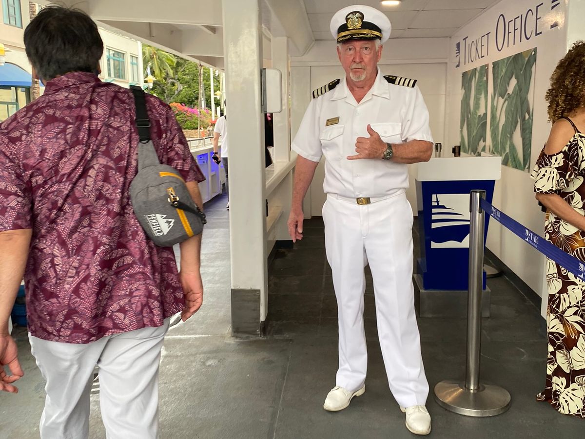 でもスタッフの方々は嫌な顔せずに丁寧に対応していただきました。船長との記念写真も時間を過ぎていましたが特別に撮影してもらえました。