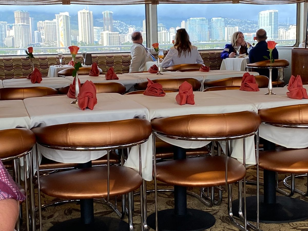 This activity is for those who like to treated like a VIP. From arrival to departure, you feel like a special guest. This boat is enormous. 4 floors of dining & entertainment. The views from the 4th floor walk around area can’t be beat. The food is good and the drinks are outstanding. If you get cold easily, bring a light jacket. The dining area is air conditioned. Supposedly, you can see the Hawaiian Village fireworks on Friday nights. A great way to get some fantastic photos and memories.