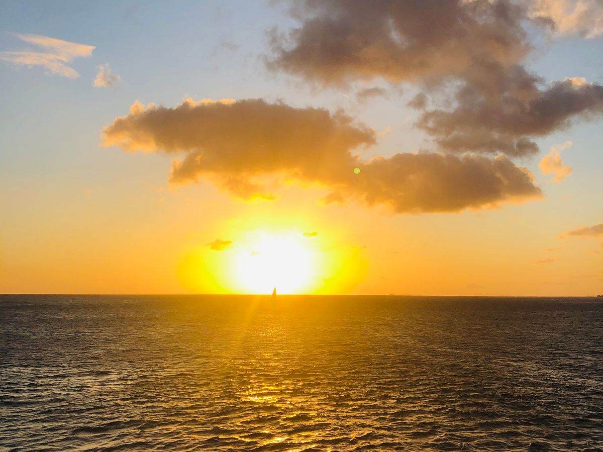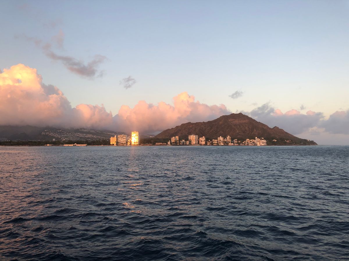 船上からワイキキビーチやダイヤモンドヘッドなどを眺めたり、沈みゆく美しい夕陽を見たりして、セーリングをたっぷり楽しめました。