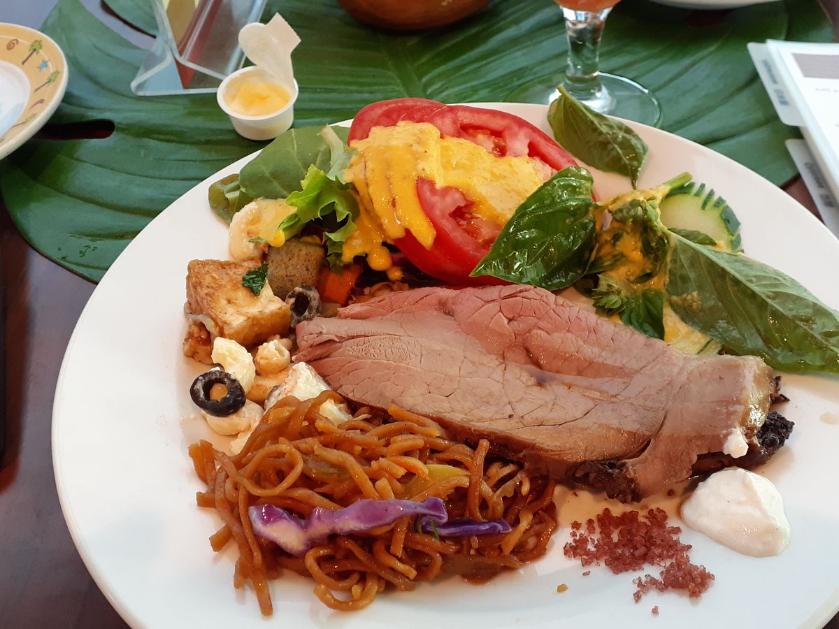 ローストビーフがメインで、品数はないけど、美味しくいただきました。昼間は、とってもいい天気だったのに、夕方から曇り空になってしまい、美しいサンセットは見られませんでした。ショーは、値段によってダンサーの人数が違うようです。歌を歌っていた人が、解説をしながら歌うという感じで凄く良かったです。最後には、お客さんもみんな輪になって踊って、とっても楽しかったです。またの機会があったら、また絶対乗ります‼️