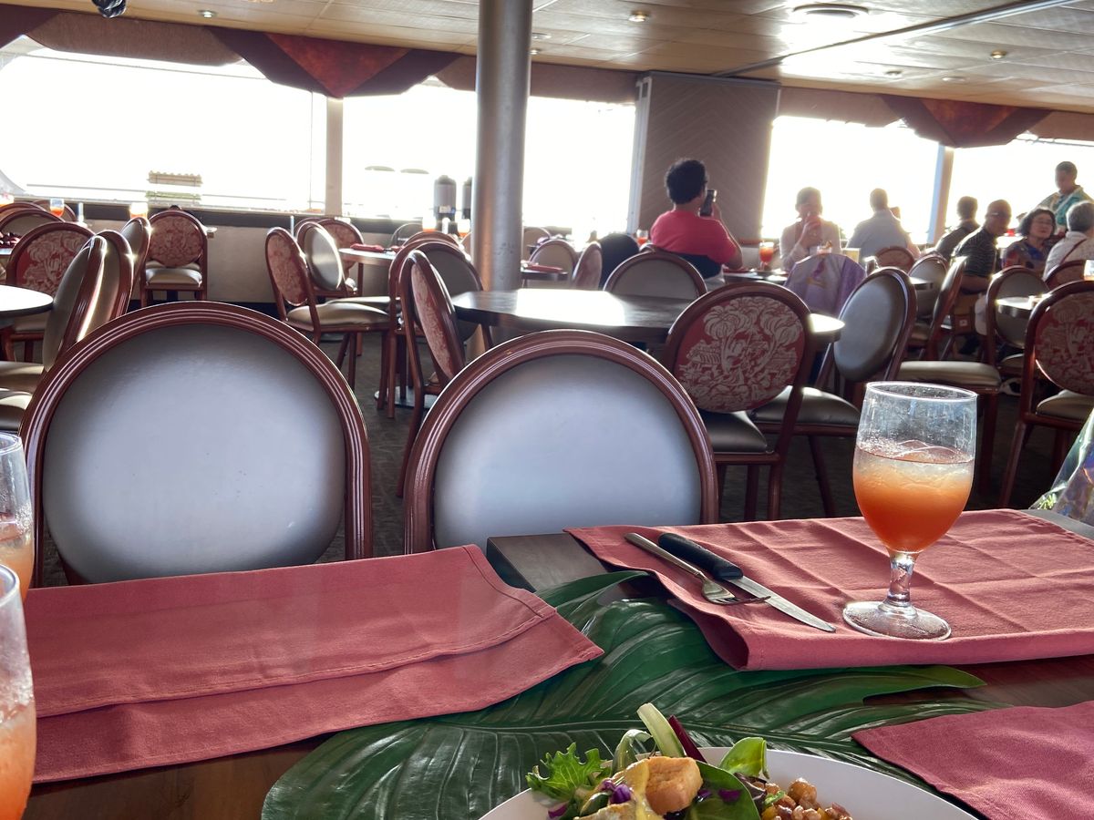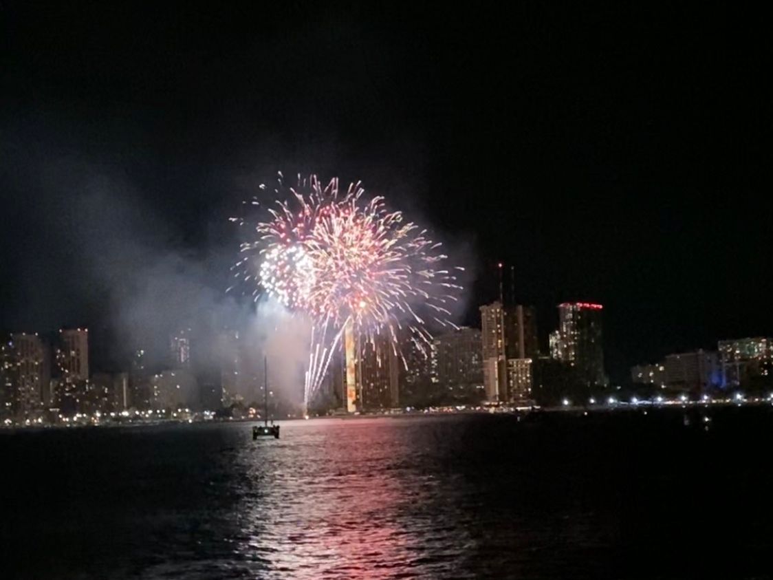 ハワイ最後の夜をこちらのクルーズ船で過ごしました。お天気が心配で花火が見られるかヤキモキしましたが、花火もなんとか見られて、よかったです。お食事はおいしかったです。特にロブスターが。ダンスや歌のアクティビティーがありましたが、最初だけで少し退屈いたしました。概して良かったと思いますが、お値段をかんがえるとどうなのでしょうか。。。