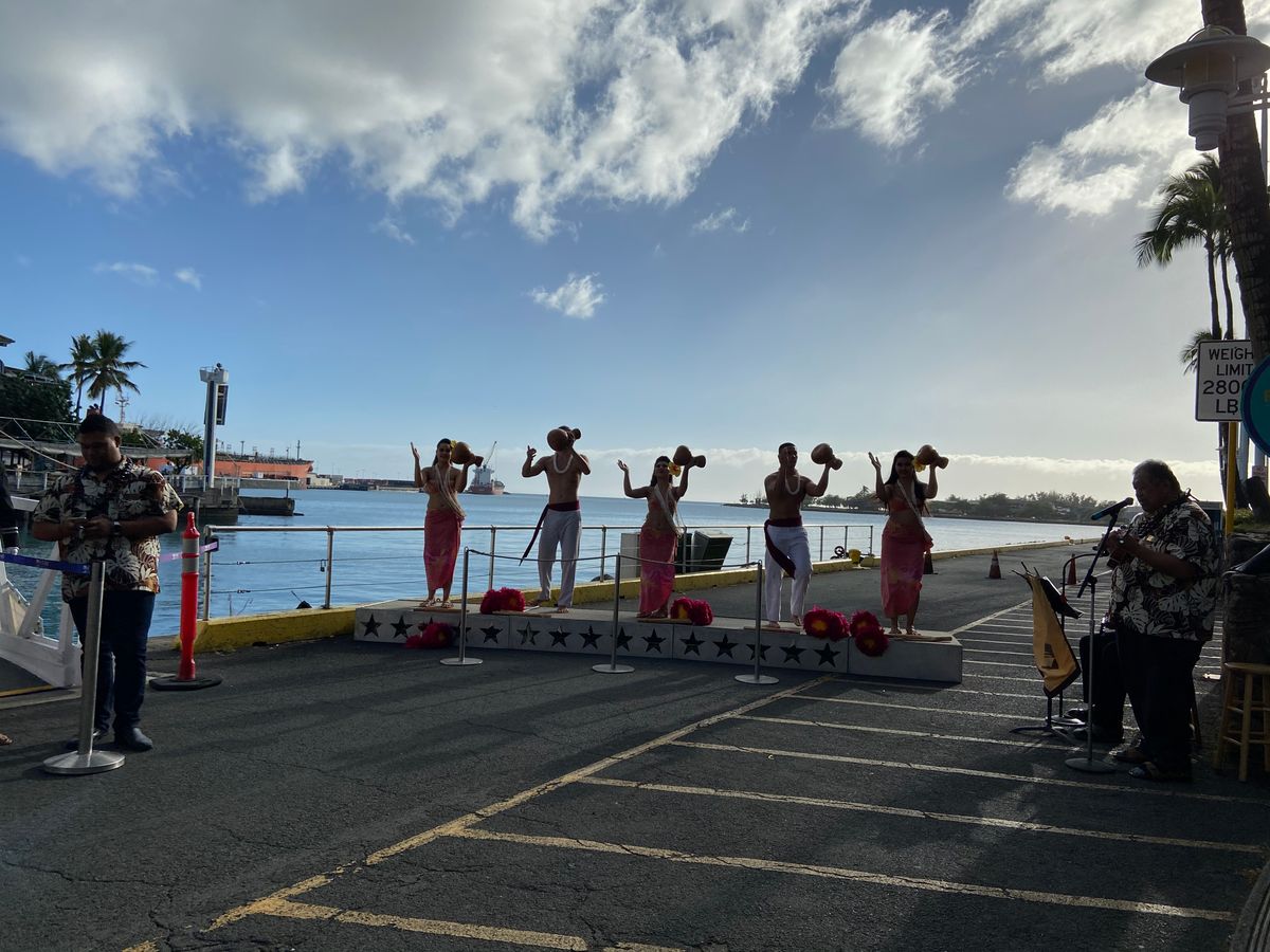 今回はハネムーンを兼ねてのハワイだったので、ディナークルーズを選んでみました。結果としては行って良かったです。料理は普通でしたが、クルーの方々のパフォーマンスも迫力があり見ごたえがありました。偶然にも海を泳ぐクジラの姿も見れて感動しました。