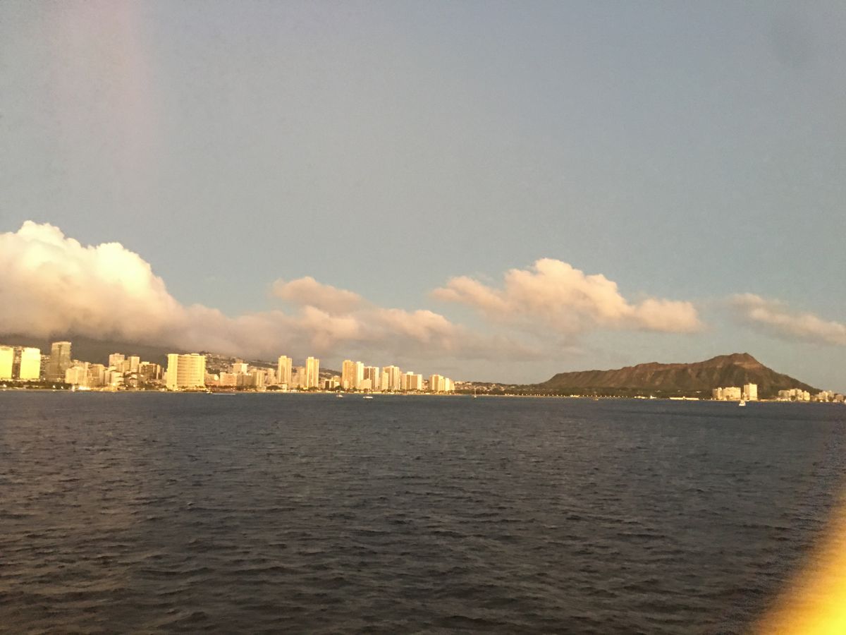 乗船前に撮られた写真、買ってしまいました。船とダイヤモンドヘッドをバックにした、けっこういい写真だったので。
