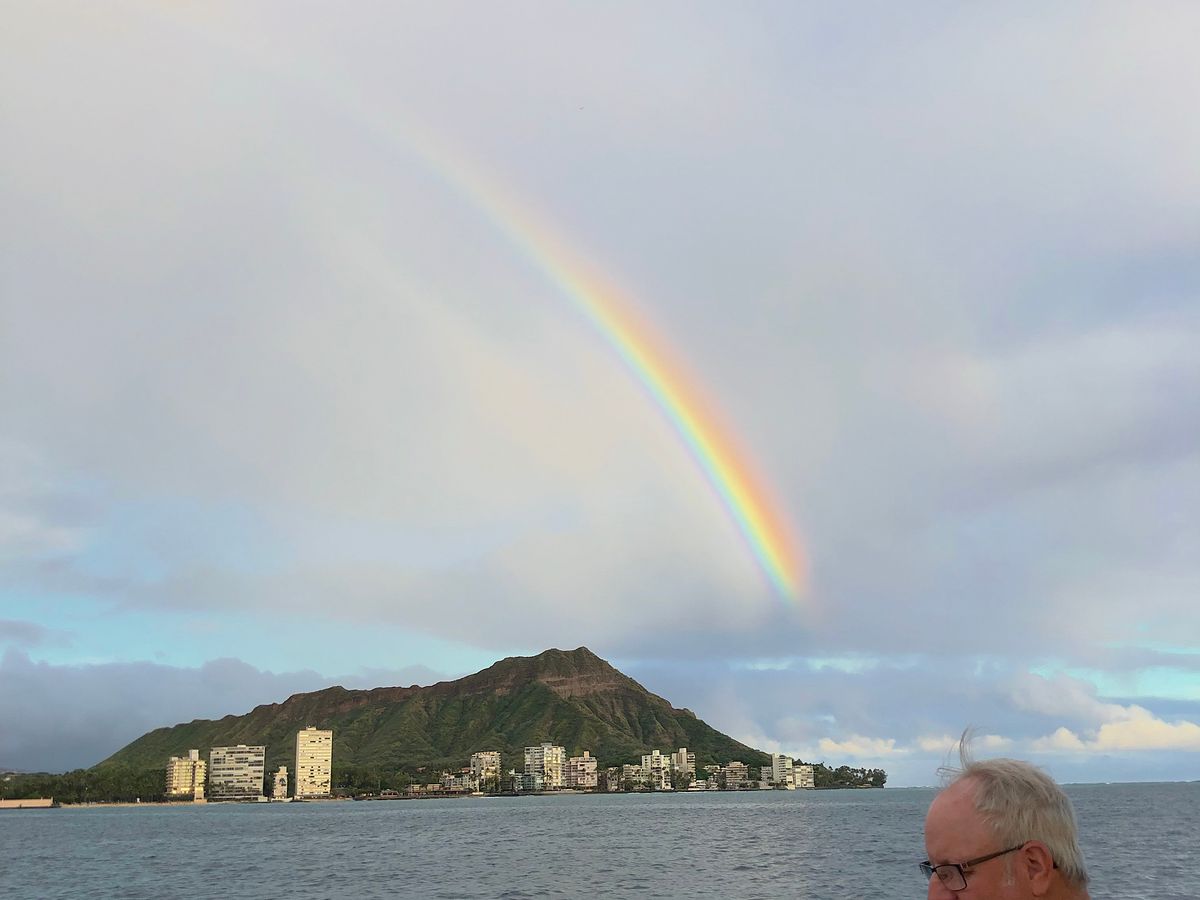 ホノルル滞在時は毎回参加するホノルルのサンセットと風を浴びながらのサンセットクルーズ。フォトジェニックなのでカメラも必携。クルーや乗客との会話も楽しめます。
