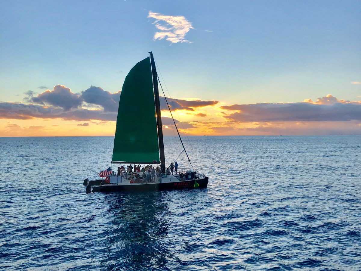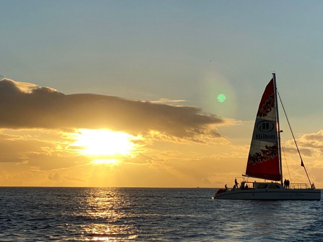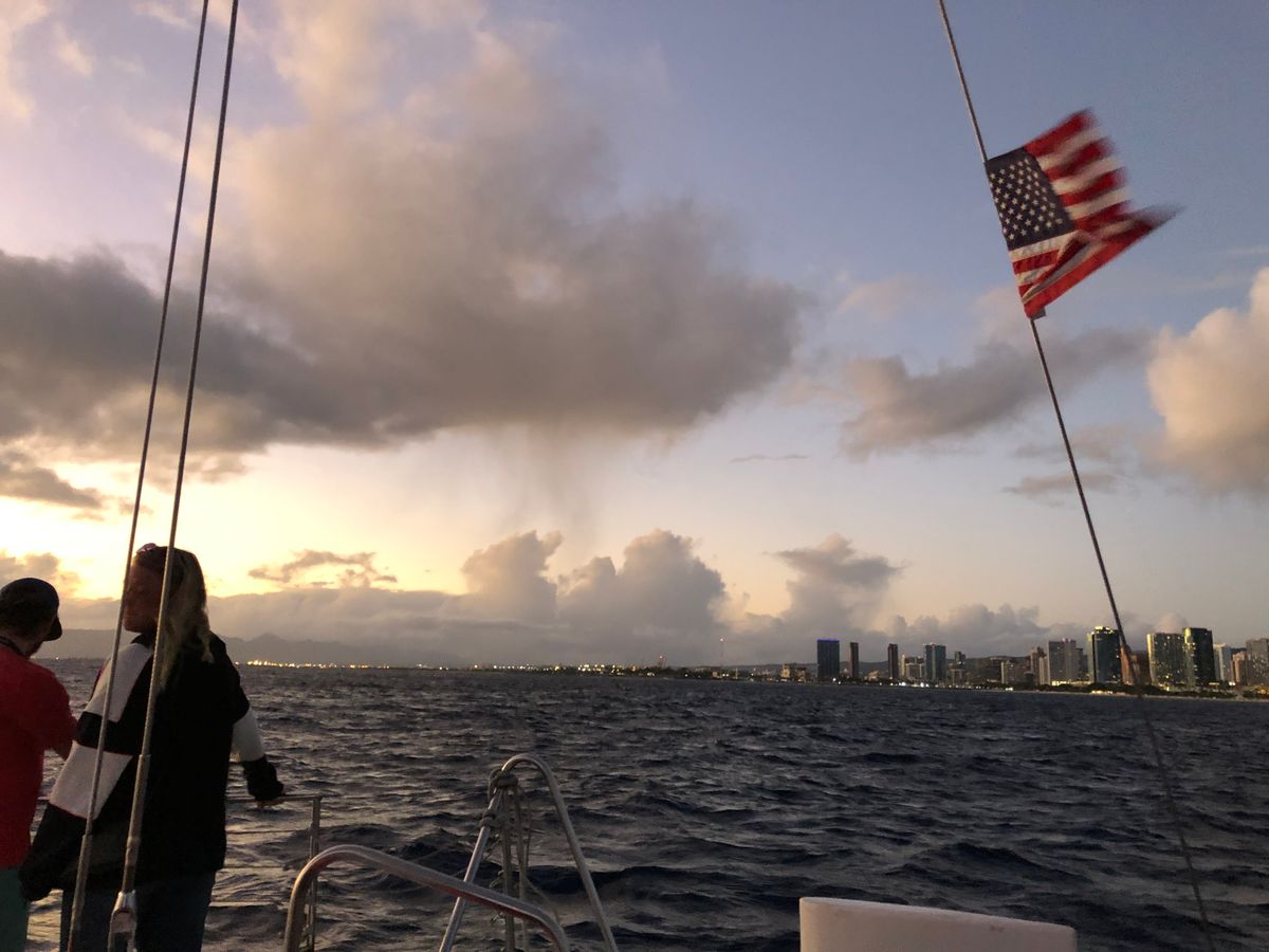 ホノルルのサンセットと風を浴びながら快適なセイリングが楽しめます。
