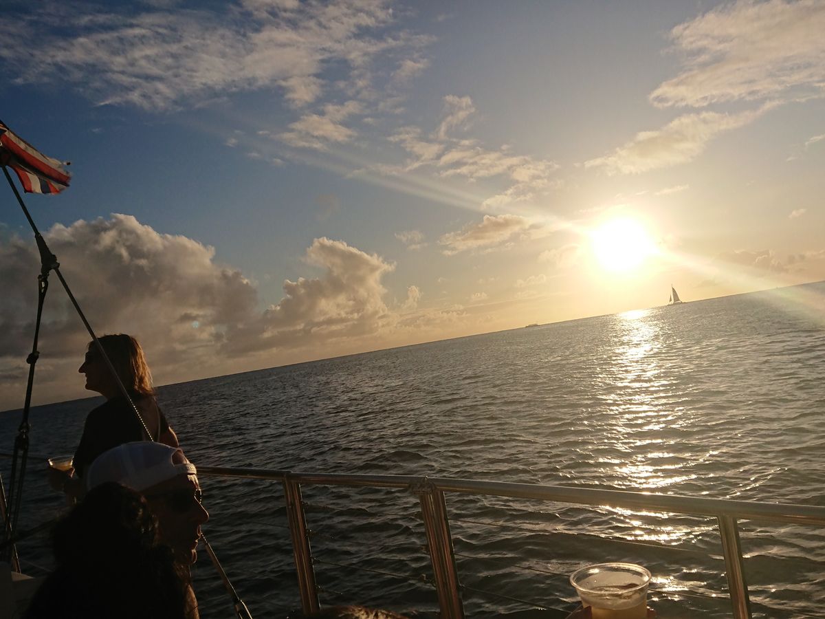 マイタイを飲みながら、サンセットを楽しむ。しかもガンガン音楽を流して。今回の旅の最終日にぴったりのオプショナルツアーでした!