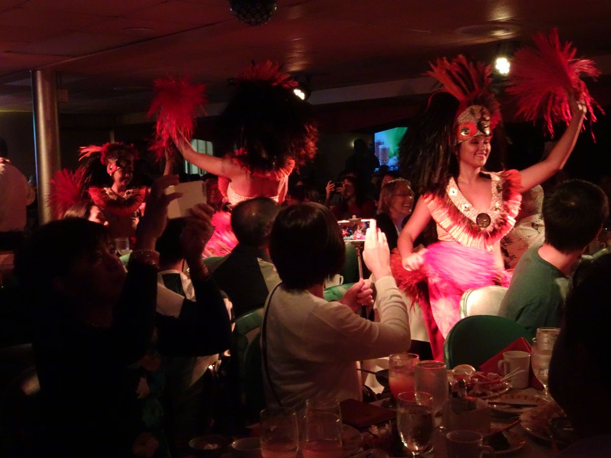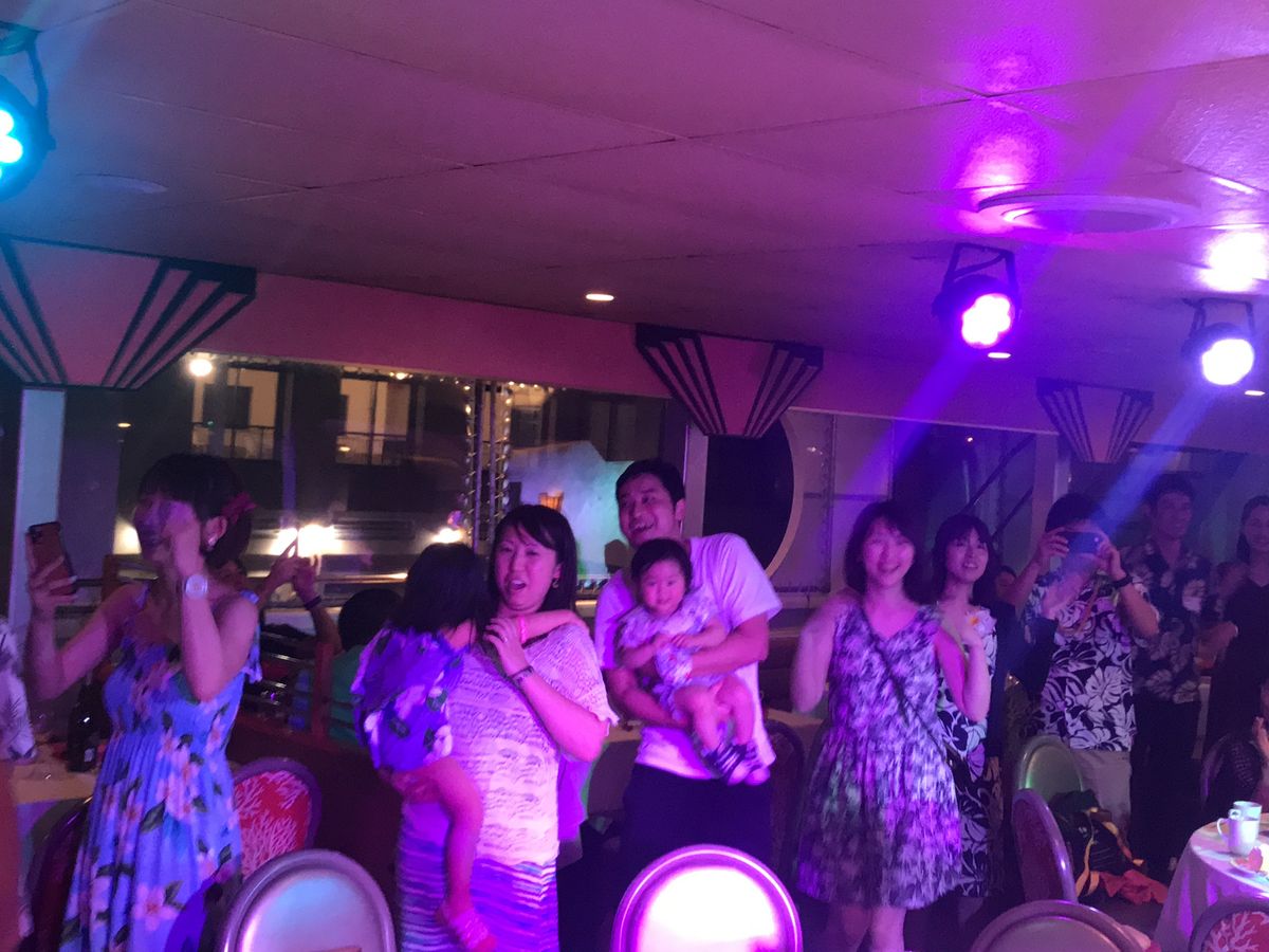 生憎の天気で夕日は見れず船は結構揺れて船酔いするのでは?と不安になりましたが、素敵な歌や賑やかなショーにと盛り上がり、船酔いも忘れていました(笑)