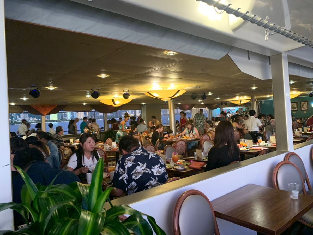 ディナークルーズのブッフェコースを選びましたが、狭いキャビンでショーもこじんまりしていて、1プレートのブッフェでした。景色も今ひとつ。