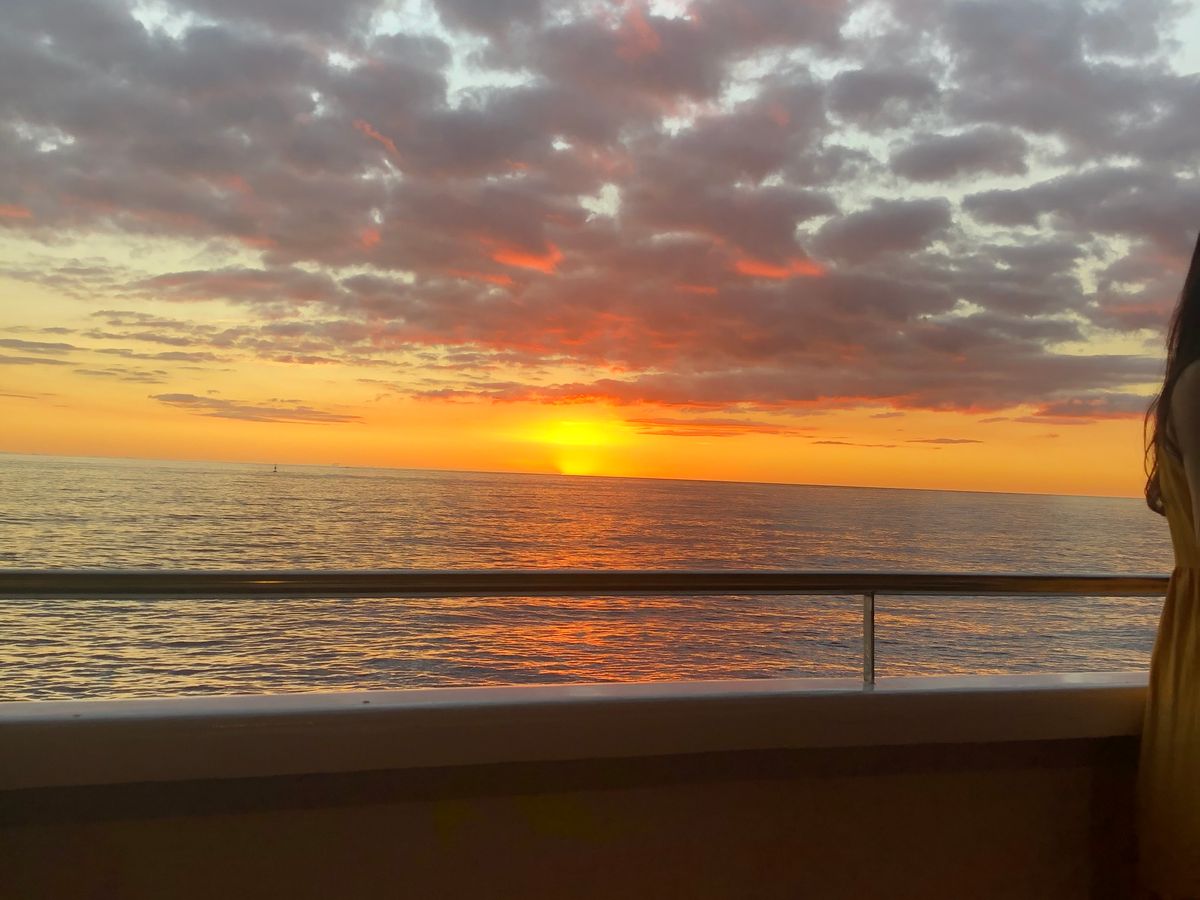 日本人がほとんどいなかったのと、乗客がお酒を飲んでハイテンションに騒ぎまくりだったので、アウェイ感は半端なかったですが、「サンセットクルーズ」という目的は果たせました。いろんな方向に船を向けてくれるので、どの席でも楽しめるようになっていると思いました。
