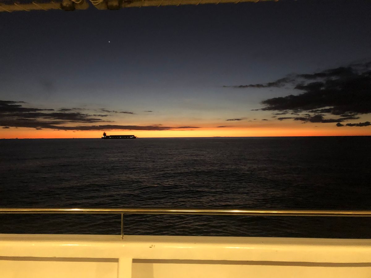 花火に合わせなのか、サンセット後に出港なので