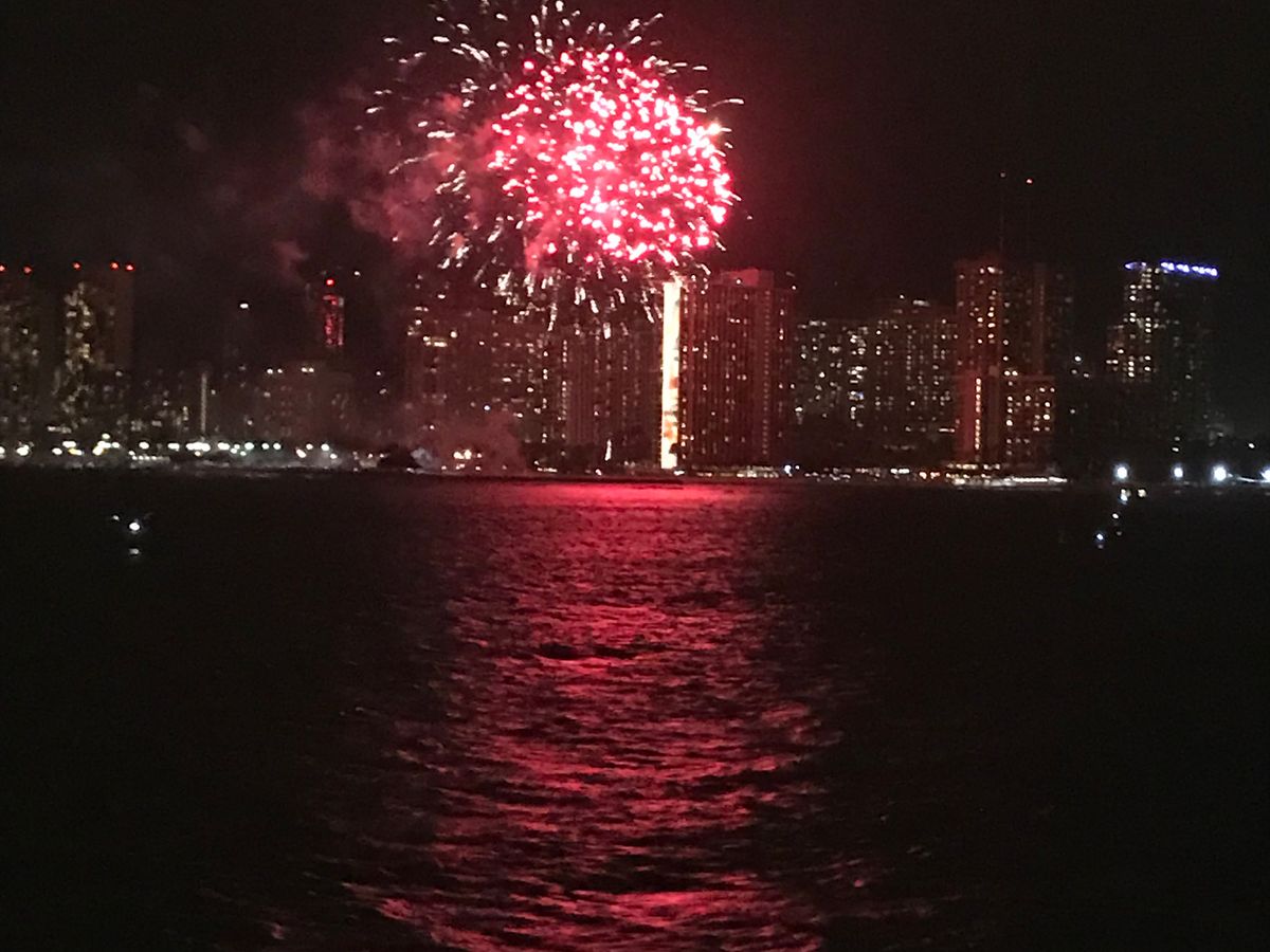 最初集合場所が見つけられずワイキキビーチを何度も散策してしまいましたが、初めてこれに参加する人がほとんどなのでもうちょっと目立つような工夫が欲しいです。船は結構なスピードと揺れがありましたがマイタイとシャンパンが飲み放題でした。花火もしっかり見れて良かったです。クルーも手慣れた感じがあり安心できました。