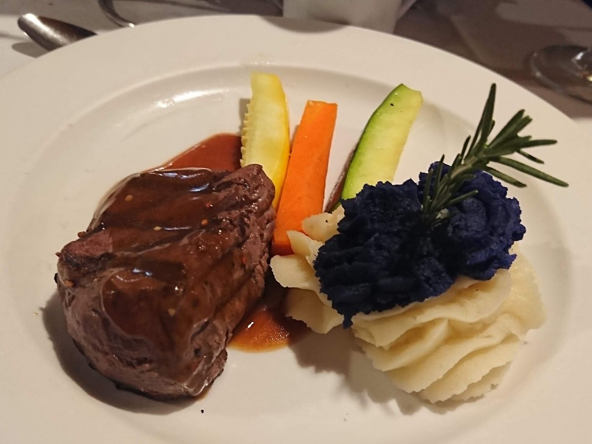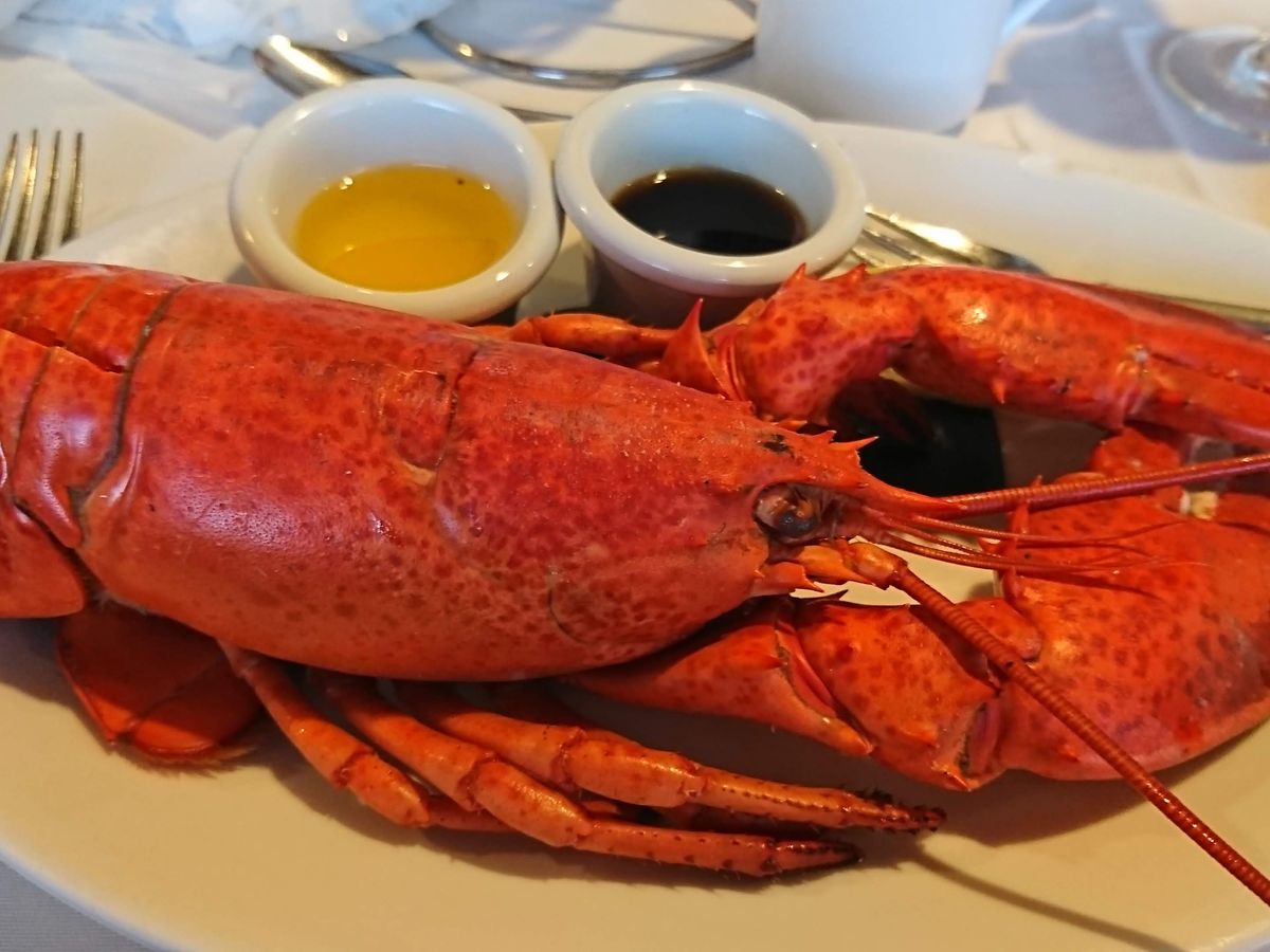 食事はロブスターが殻付きで来たのは衝撃で、手がベタベタ、服にも被害が出ましたが、味は大満足!