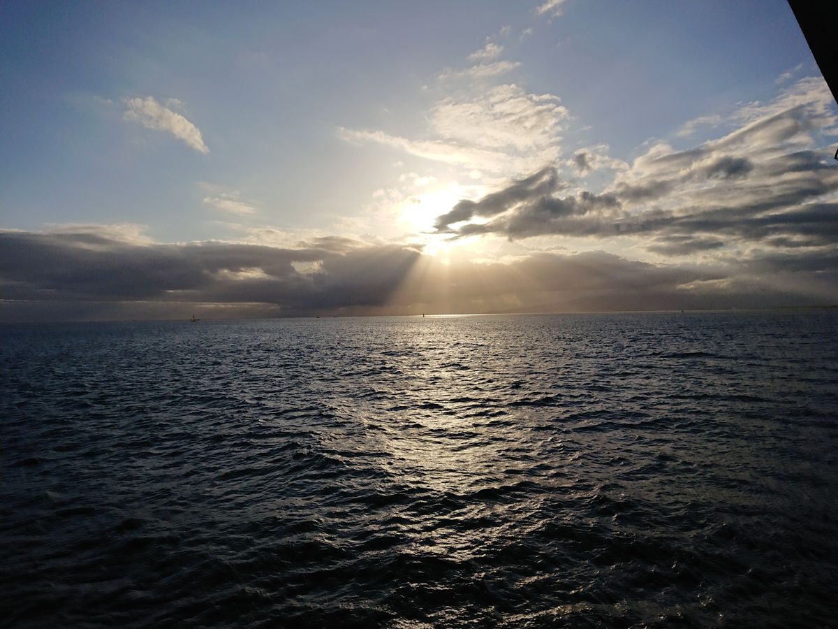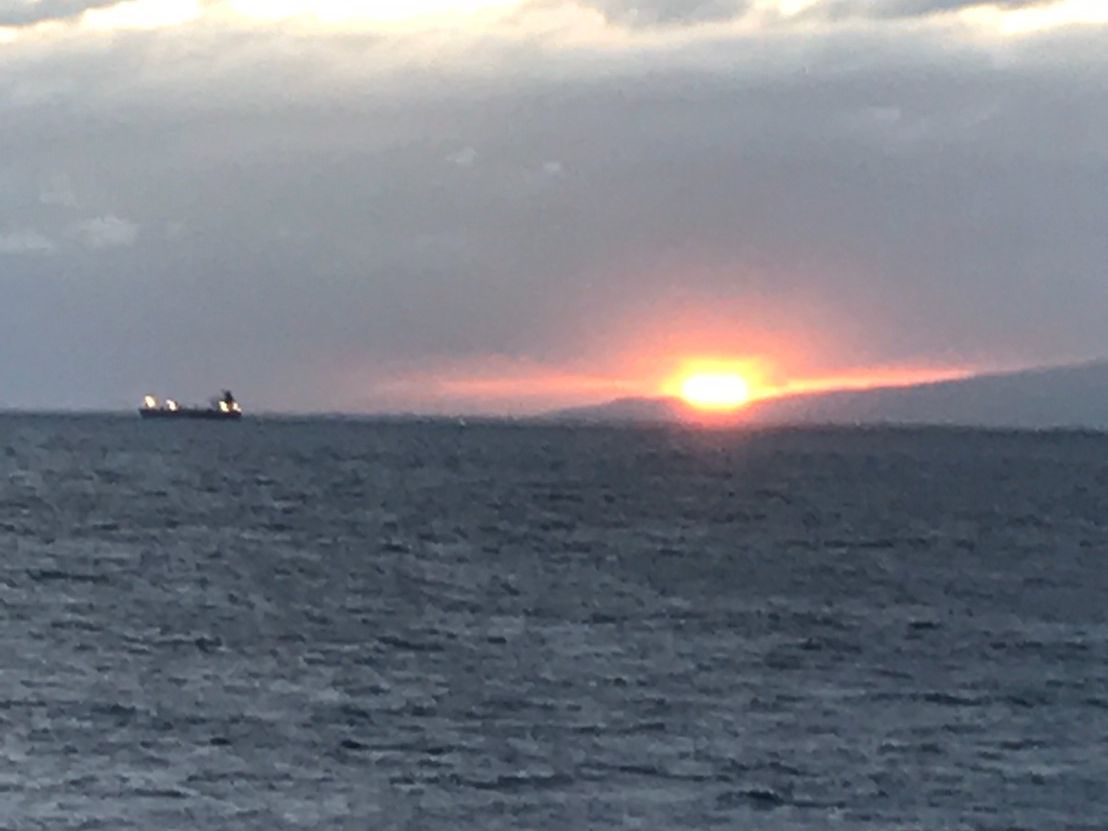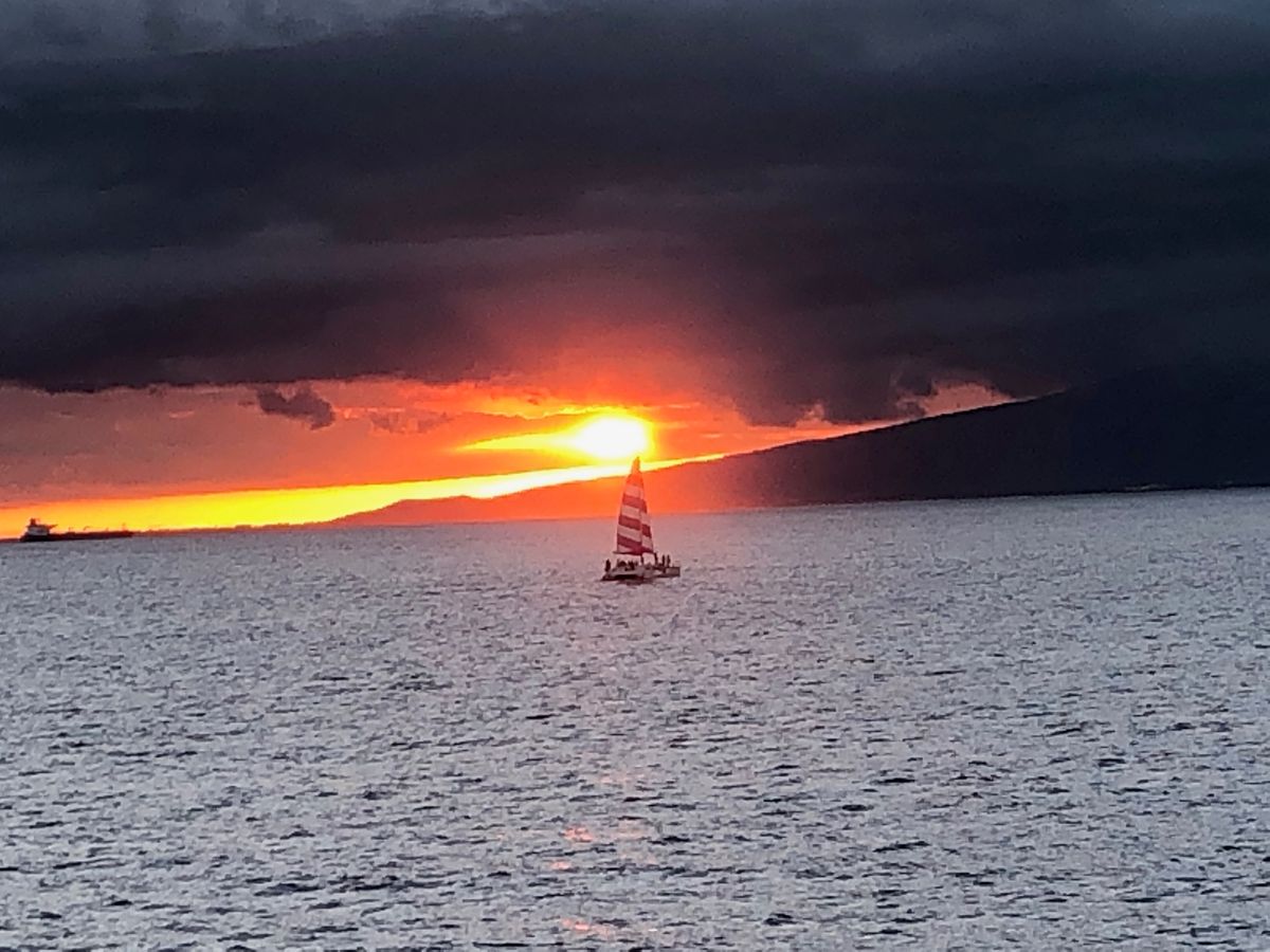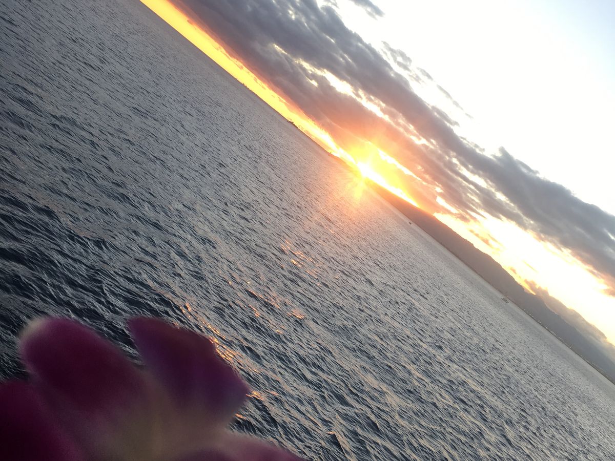 初めてのサンセットセ―リング、すごく楽しみにしていましたがお天気が悪かったため、真っ赤に染まる夕日は見ることが出来ませんでした。しかし、ほんの少し、雲の切れ間から太陽のオレンジ色を見ることが出来て良かったです。乗船するときに足が濡れるため、脱ぎやすい靴がいいと思います。船上では、最初にマイタイを配ってもらえますが、その後は好きなタイミングでいろんなアルコールをオーダーできます。スタッフの皆さんは陽気でとても優しく、パフォーマンスもあり楽しい時間を過ごすことが出来ました。