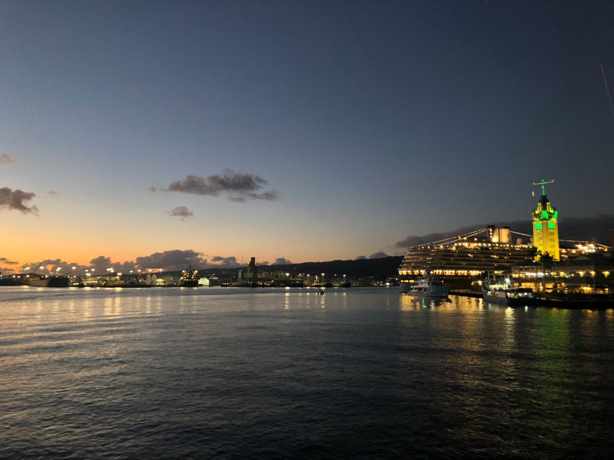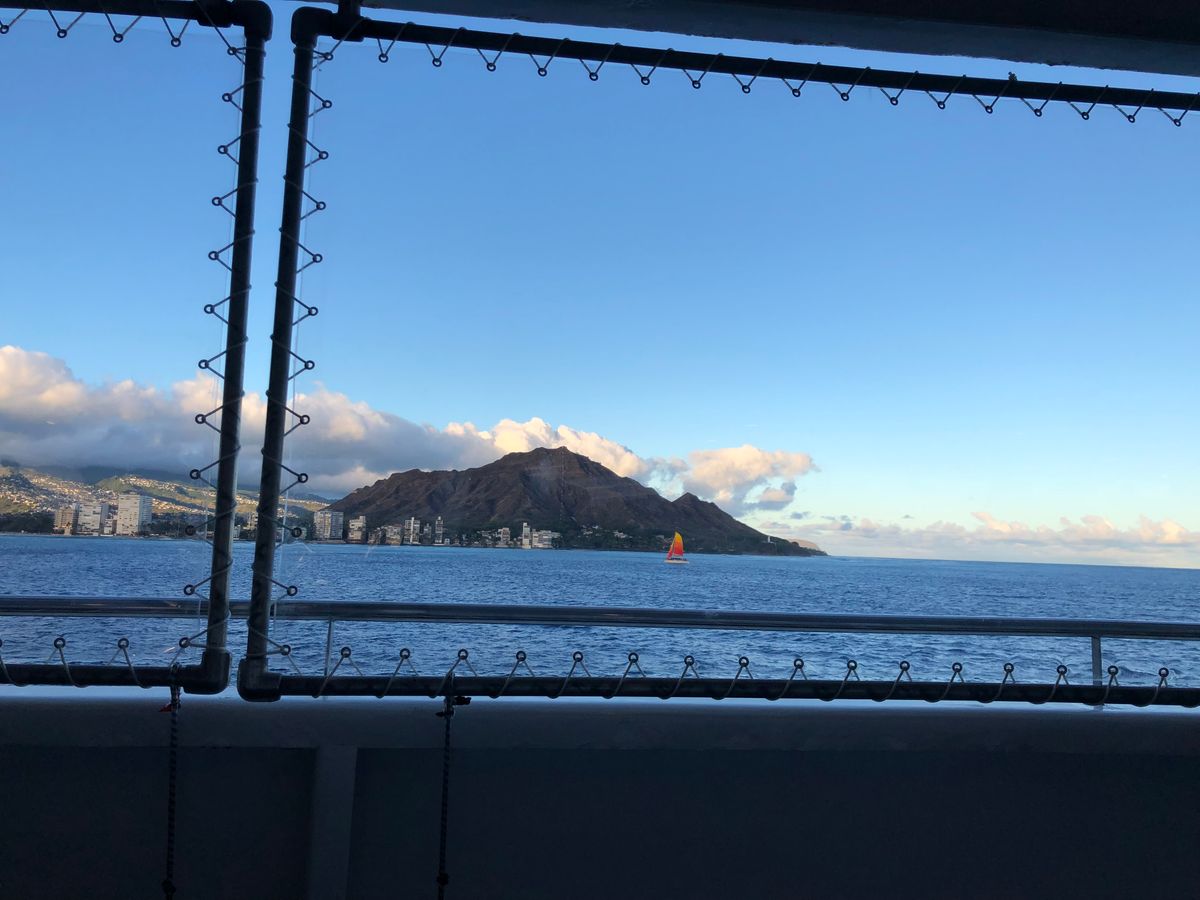 船上なのでお料理はそこそこといったところですが、きれいな夕陽、ワイキキビーチやダイヤモンドヘッドを眺めて旅を振り返り、楽しいひと時を過ごすことができました。
