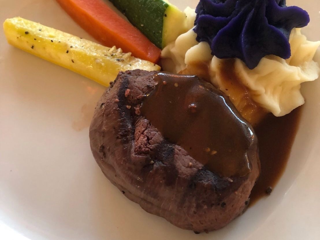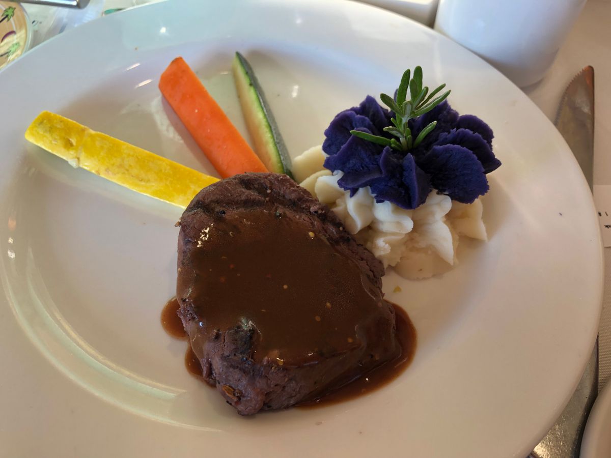 船が大きいためかあまり揺れず、食事や音楽、ダンスを楽しむことができました。船の中ということで正直料理にはあまり期待していなかったのですが、ぷりぷりのロブスターといい焼き具合のステーキが出てきて驚きました。サーバーの皆さんの感じもよかったです。ただし会話しながら食事するには少々騒がしいので、そうしたい方は別のコースがいいと思います。