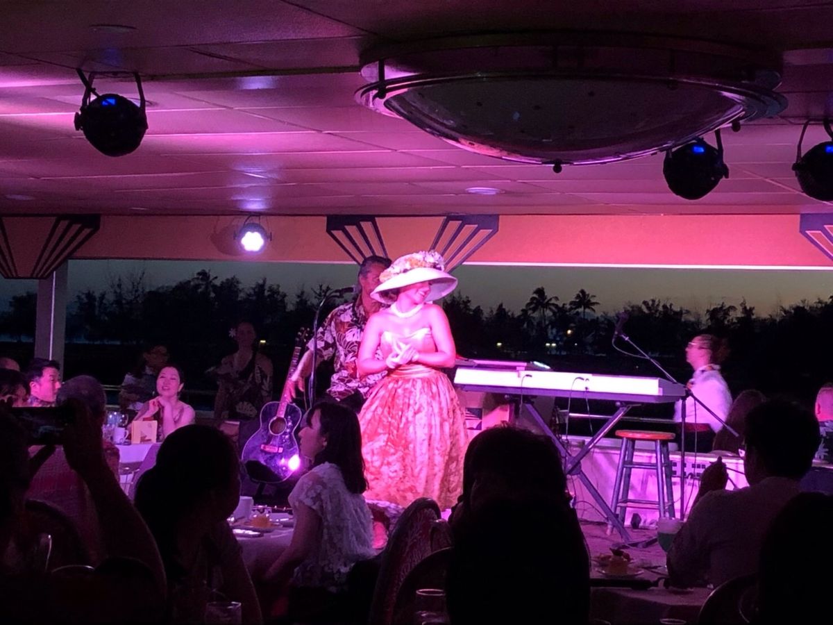 家族で初めてのハワイ旅行でした。どうしてもディナークルーズをしたかったので、一番リーズナブルなプランで参加しました。コース料理もありましたが、ビュッフェスタイルの食事で十分満足の内容でした。