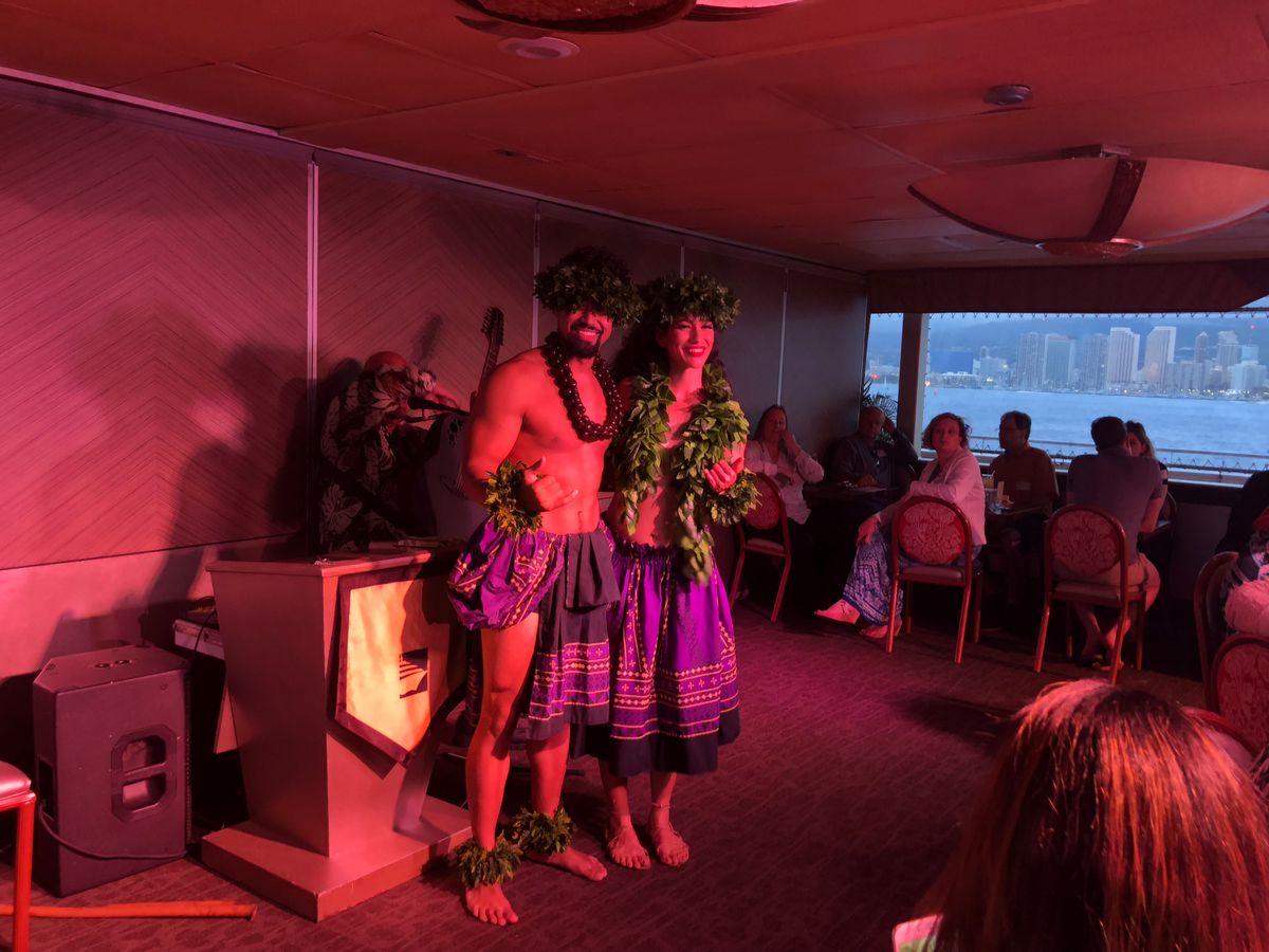 船から見る景色と、ダンスと音楽とで、ハワイに来た気分が盛り上がります。