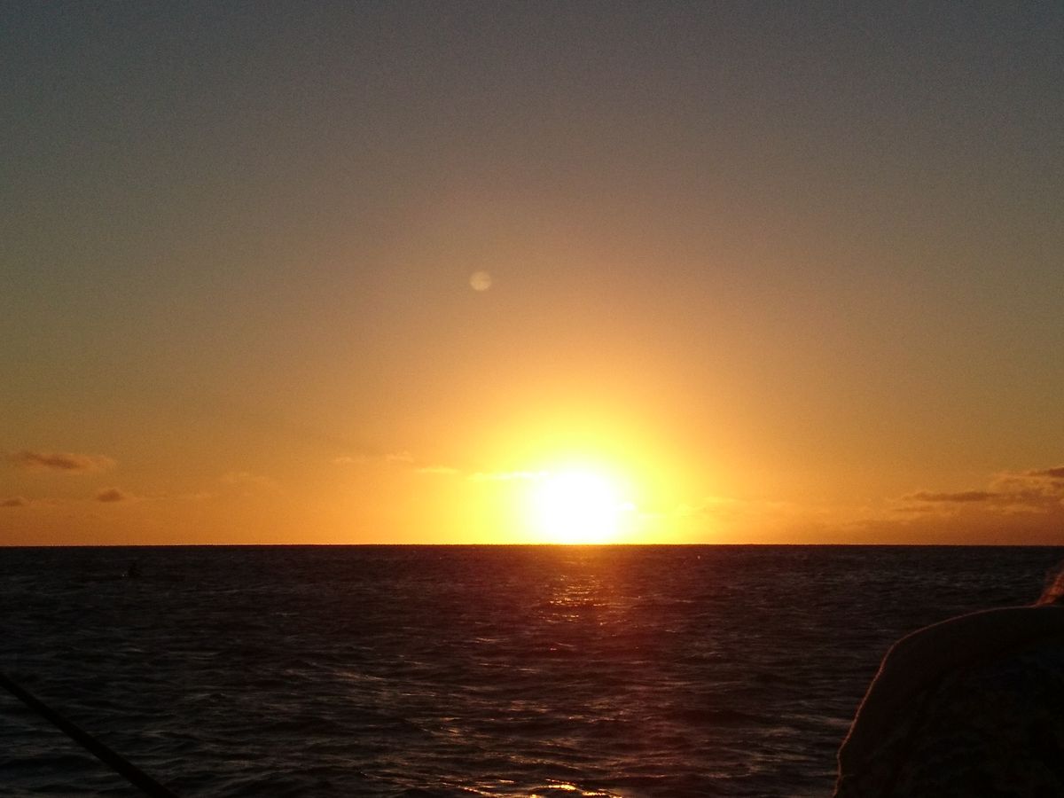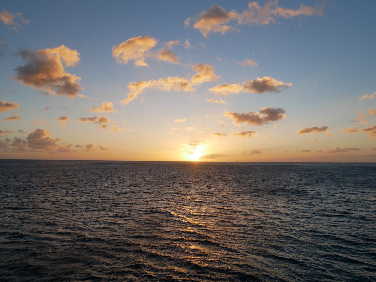 直前まで曇りがちでしたが運良く雲も上がり、ハワイの海上から見るサンセットは綺麗かった。