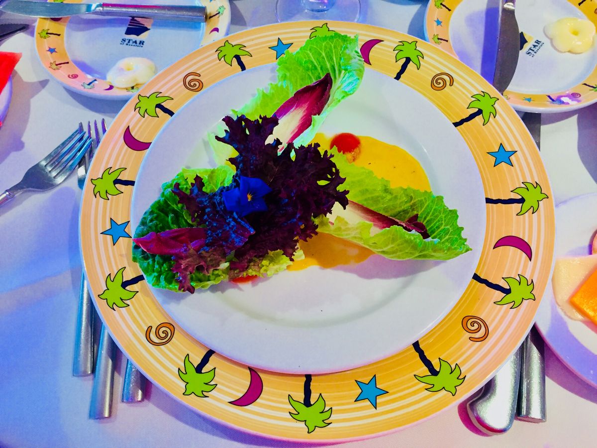過去のディナークルーズ体験の中では一番ゆったりとした雰囲気と快く過ごせたと思う。が、しかし過去体験の中で最も料理が私の口には合わなかった。ビュッフェ方式だか、肉料理は全て私にとって臭く、野菜も新鮮とは言えず、どれもがしんなり、さらばパンなら…が、これまたパサパサでモサモサ…まぁ海外、特にアメリカのパンに多い傾向ですが、口の中の水分を全て持って行かれるかと思いました。よくここまで質を落とせるなと思うほどのレベルです。すなわち料理は一口食べただけでその後はまったく手を付けずじまい…。サンドイッチとかハンバーガーなどの方が100倍良いと思います。それ以外はとても良いのに料理がダメだと全てが台無しなんですよ。最近のハワイは昔に比べてとてもレベルアップしたレストランが増えてきた(オーナーや料理ディレクターが日本人か日系のところが増えたのでという理由も少なくない)ので、今回はビックリするくらい料理でした。あくまでもフードアナリスト(レストランの格付けとかしております)としての私の極めて個人的な見解です。