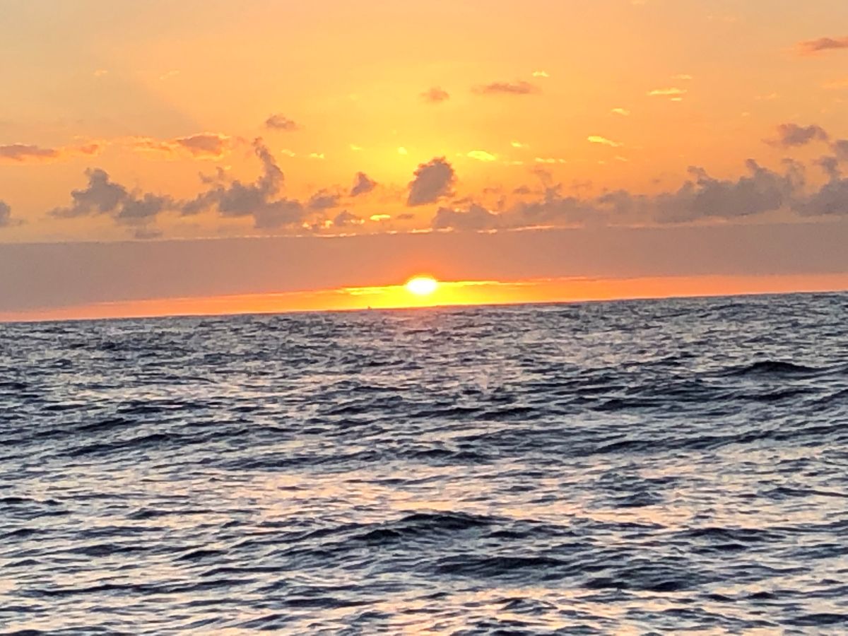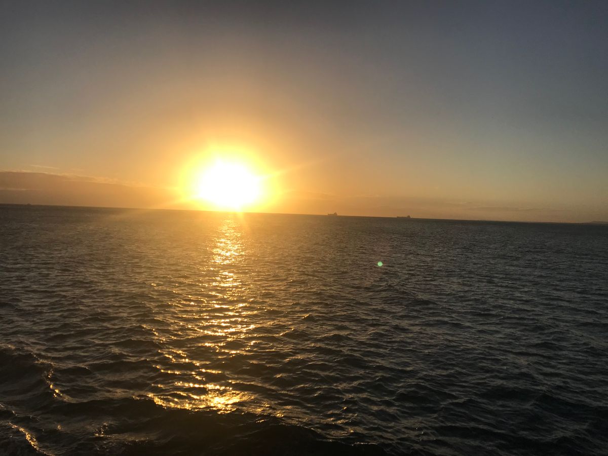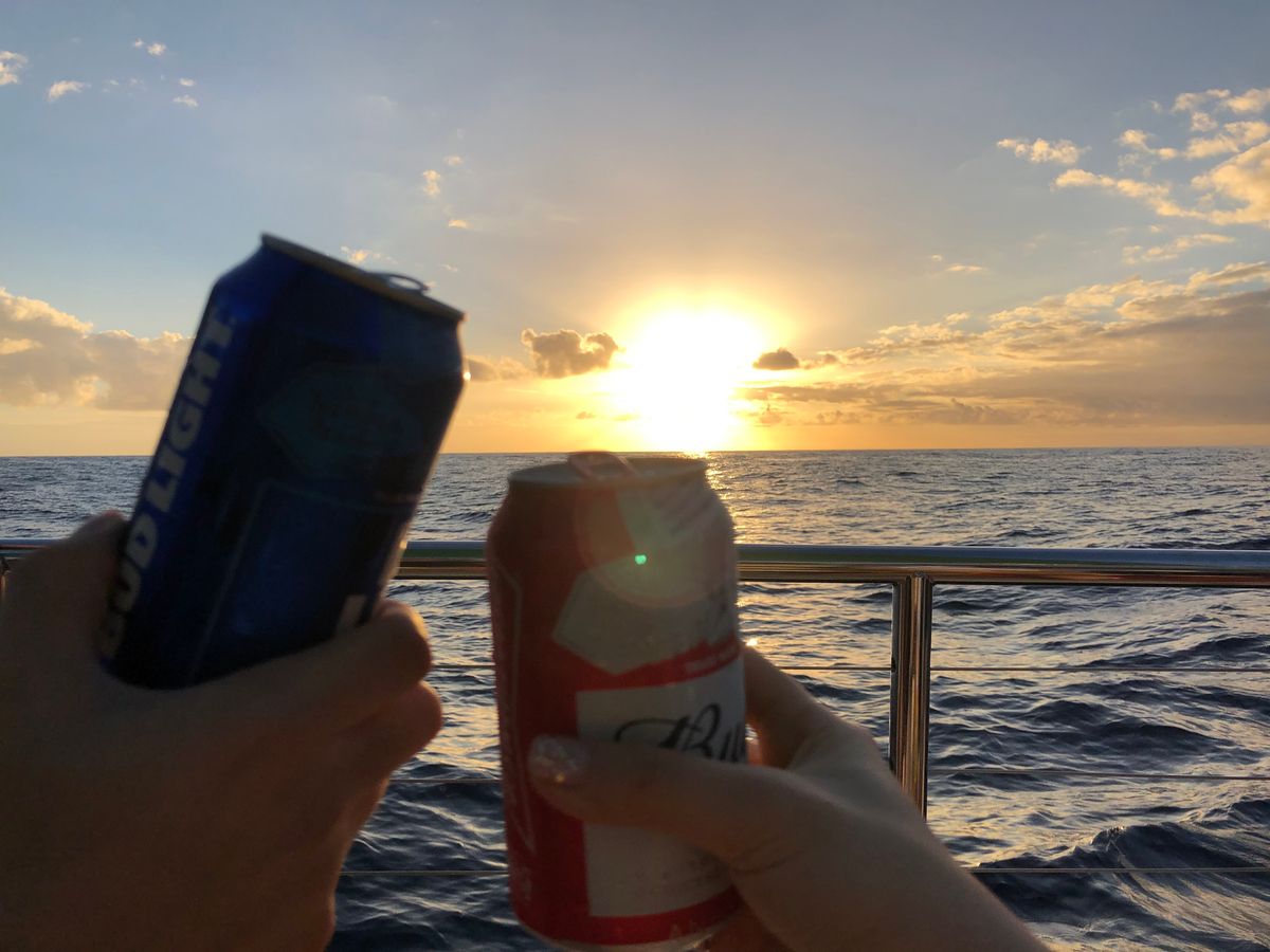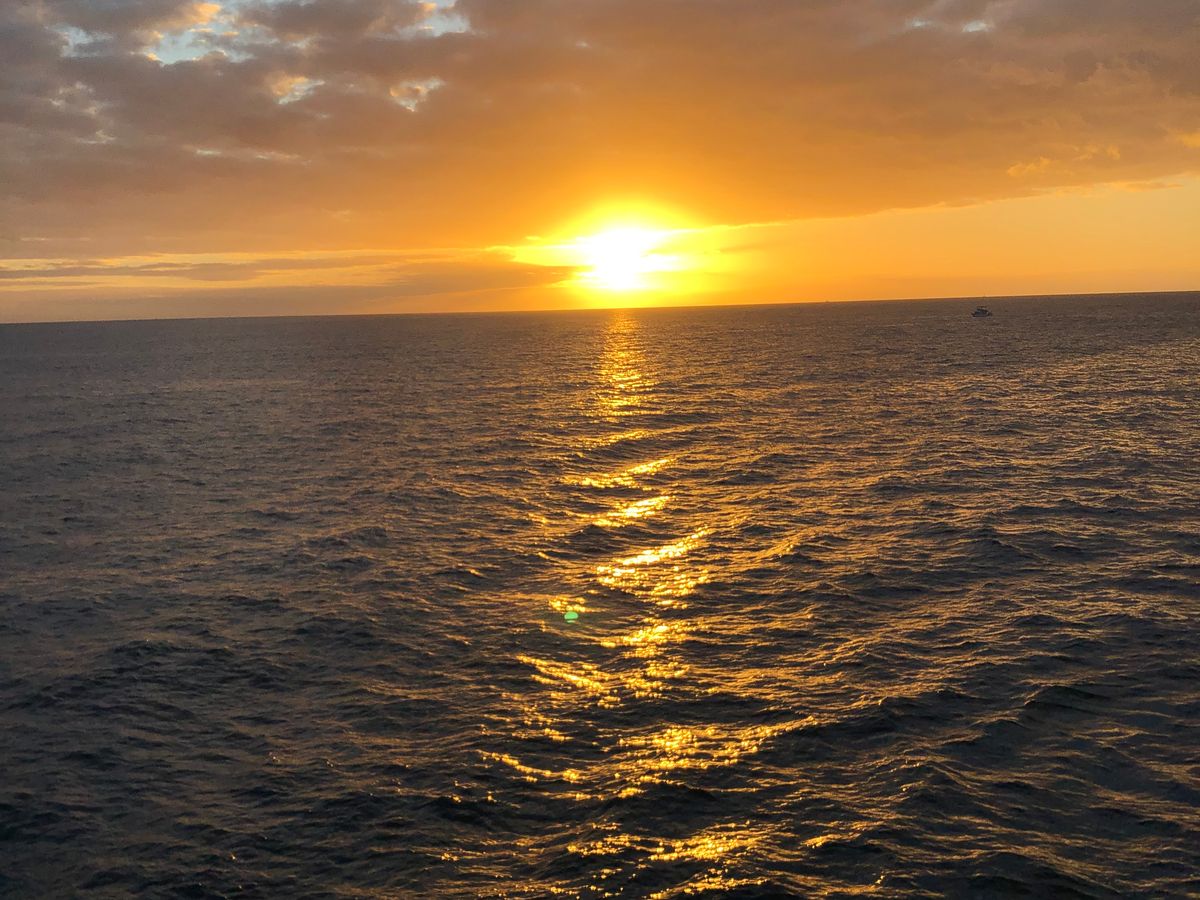 私たち夫婦は、2019年の元日に行われたサンセットクルーズを心から楽しみました!クルーのプロフェッショナリズムと時間厳守に感心しました。ワイキキからのシャトルで送迎してもらい、その費用は予約時に含まれていました。クルーズでの私たちのお気に入りの部分は、親密さとクジラを見ることができたことです!ゲストは25〜30人で、カタマランは広々として快適でした。アドバイスとして、快適な服装を着用し、長袖やセーターは必須です。風が強くて肌寒くなります。写真を撮る機会は無限です。楽しんで、「シッピーカップ」を購入することを忘れないでください。素敵な記念品になりますが、何よりも提供される1ドリンクチケット以上に飲む予定なら、コストパフォーマンスが良くなります。あ、それと、船酔いが心配な方は、ドラマミンを持参してください。揺れることがありますので。これが役に立てば幸いです。楽しんでください!