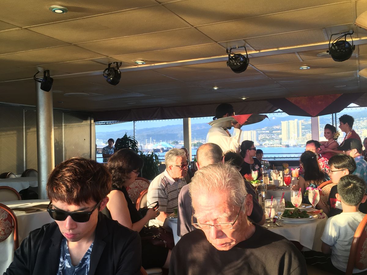 7年前に一度乗ったことがありもう一度乗りたい!と思い参加しました。料理も美味しく、またキャストの皆さんもノリノリで盛り上げてくれて、フラも近くで踊ってくれました。あいにくの雨でサンセットは見れませんでしたが、金曜日だったので、ヒルトンの花火が見れました。船の上の特等席から見る花火は最高で、ハワイでのいい思い出ができました!