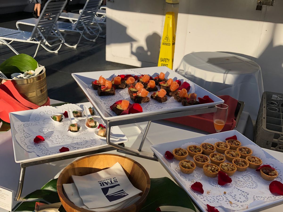 一言でいうと最高でした!キャプテンのお出迎えから始まり、素晴らしい料理とパフォーマンスでもてなして頂きました。